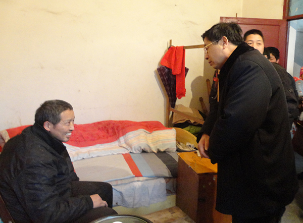 2012年1月13日,校党委书记何小祥在党委委员、办公室主任刘友忠,办公室副主任、曾挂职担任宿松县北浴乡罗汉山村党委书记的李新建等同志的陪同下冒雨前往beat365官网结对帮扶点宿松县北浴乡慰问困难群众。宿松县委书记张小青、县长王华等接待了何书记一行。宿松县委常委、组织部长李红兵等陪同慰问。