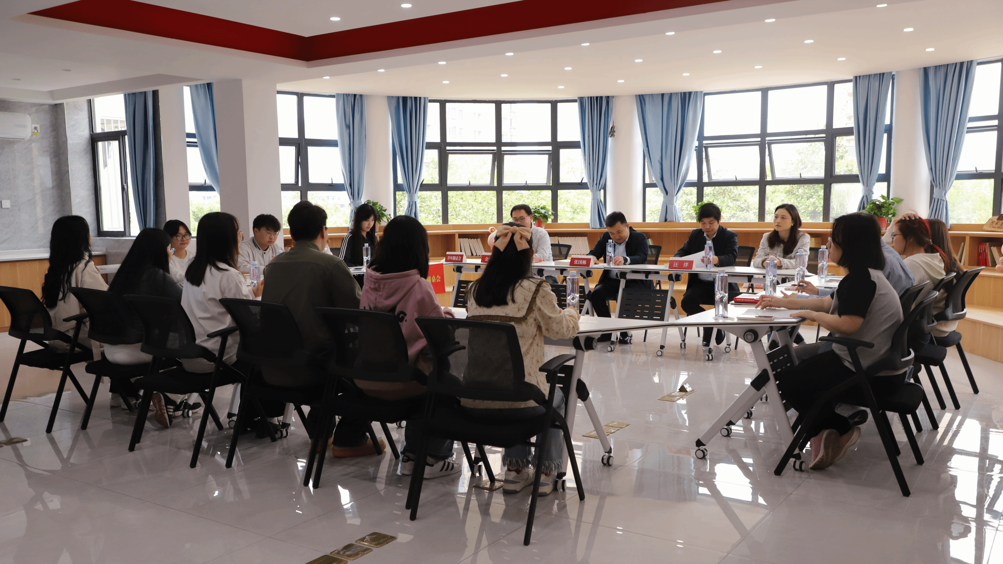 张国栋调研考察了学生会改革、学生社团、美育等工作,充分肯定了学校共青团取得的成绩。张国栋在走访“一站式”学生社区工作站时,出席了“挺膺担当,逐梦青春”青年圆桌读书会活动。他指出,青年学生尤其是学生会组织的骨干,要敏思笃行,在工作中锻炼自己、服务同学。他强调,新时代青年大学生要坚定理想信念,练就过硬本领,在实干担当的火热实践中圆梦青春。