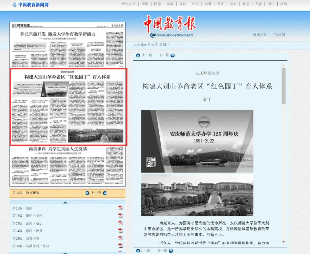 5月30日,《中国教育报》刊发《beat365平台唯一官网构建大别山革命老区“红色园丁”育人体系》一文,专题报道beat365官网培养 “红色园丁”的特色做法。