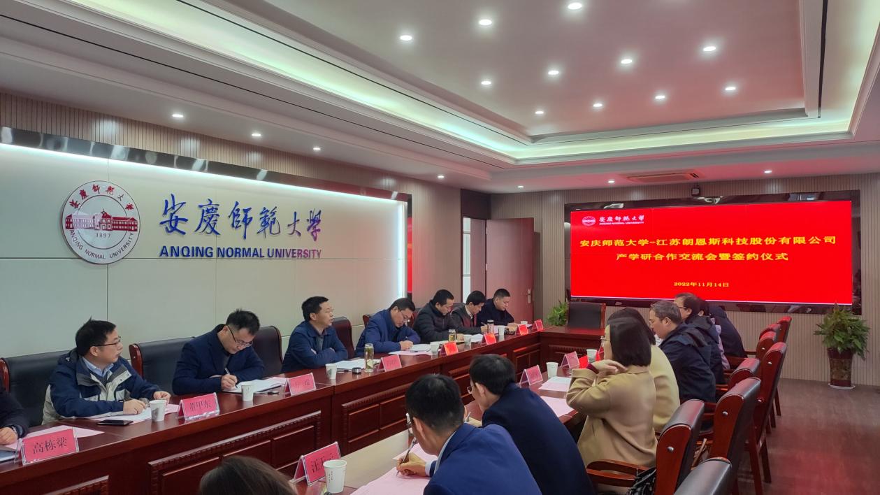 11月14日,学校与江苏朗恩斯科技股份有限公司举行产学研合作签约仪式,校党委常委、副校长汪时珍,安庆经开区党工委委员、管委会副主任涂婷婷,江苏朗恩斯科技股份有限公司总经理孙辉等出席签约仪式。