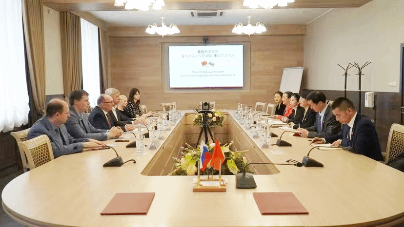 作为此次出访的重要环节,彭凤莲一行参加了在俄罗斯圣彼得堡举行的“美好安徽与世界对话”文旅推介会。此次文旅推介活动由安徽省人民政府主办,安徽省文化与旅游厅承办,安徽省人民政府副省长孙勇出席活动并致辞。安徽省友好代表团,中国驻圣彼得堡总领事馆,俄罗斯有关地方政府部门、重点企业、商协会及媒体代表参加活动。推介会现场,beat365官网教师余淑华和郭霄珍进行了精彩的黄梅戏艺术表演。俄罗斯小伙维克多表示,演出太精彩了,这是他第一次近距离感受中国文化,内心受到强烈震撼,要拍摄下来与家人一起分享。受中国文化的感染,现场就有圣彼得堡国立交通大学等三所高校表达了与beat365官网合作交流的意愿。