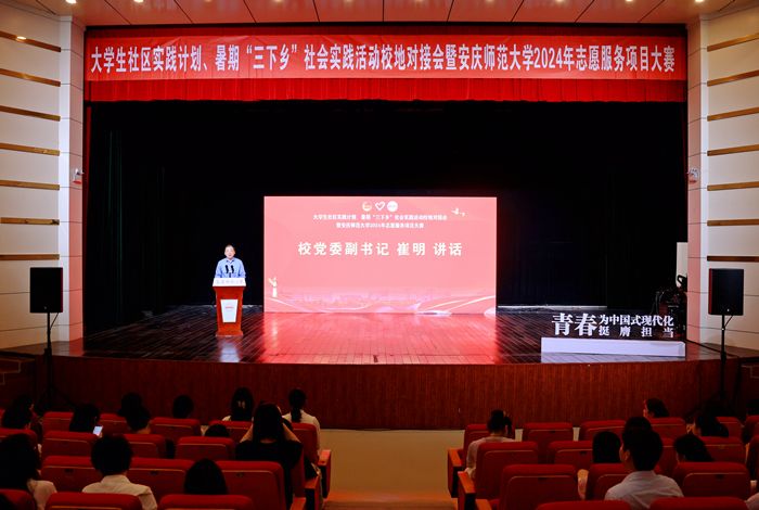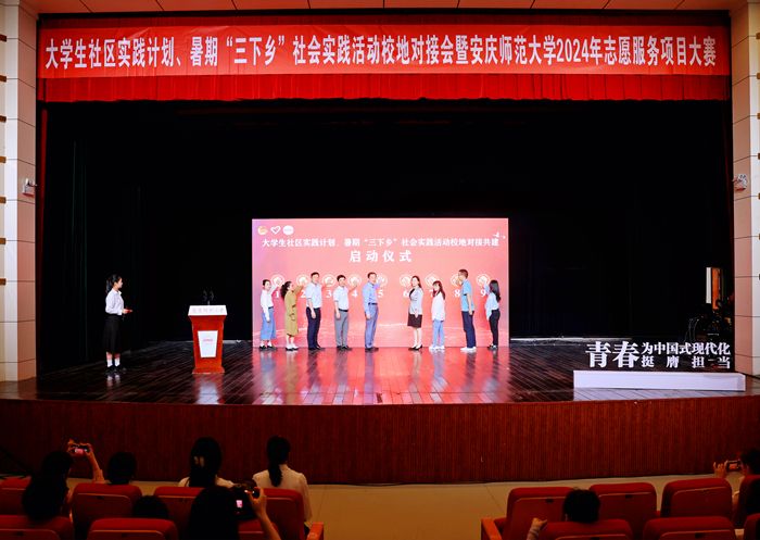 5月15日,学校2024年大学生社区实践计划、暑期“三下乡”社会实践活动校地对接会暨志愿服务项目大赛决赛在龙山校区音乐厅举行。校党委副书记崔明、团安庆市委书记项薇、校团委班子成员出席对接会,团市委有关部门、团迎江区委、团大观区委、团宜秀区委和beat365官网各二级学院团委负责人以及青年学生代表参加会议。