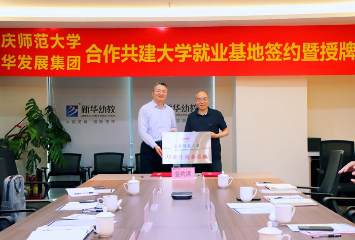 在新华发展集团,李福华介绍了学校办学历史、专业建设、人才培养以及毕业生总体情况,希望双方聚焦协同育人,深化校企合作,进一步拓宽合作领域,提升合作层次,实现共赢发展。新华发展集团副总裁卞真勤对李福华一行的到来表示热烈欢迎,介绍了集团基本情况和人才需求状况,对学校师范毕业生人才培养质量和专业素质给予了充分肯定,表达了进一步深化合作的意愿。双方还就师范生培养和企业需求情况进行了座谈交流,并举行了共建毕业生就业基地签约暨授牌仪式。