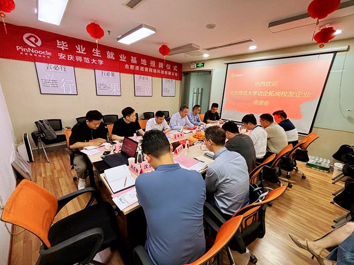 在合肥访企拓岗期间,李福华看望了合肥皮诺客网络科技有限公司、安徽华新通网络工程有限公司、安徽兰智大数据科技有限公司、安徽德象智能工程有限公司、安徽海之纳科技有限公司等8家校友企业负责人。在合肥皮诺客网络科技有限公司召开了校友企业代表座谈会。会上,李福华介绍了学校悠久的办学历史和发展现状,重点介绍了学校人才培养和毕业生就业情况,听取了校友企业负责人关于企业发展和运行情况的介绍,对校友企业取得的成绩表示欣慰,希望校友们常回母校看看。校企双方围绕如何深化合作和加强就业基地建设进行了座谈交流。学校还与合肥皮诺客网络科技有限公司签订了就业基地合作协议并进行了就业基地授牌。