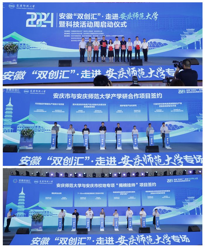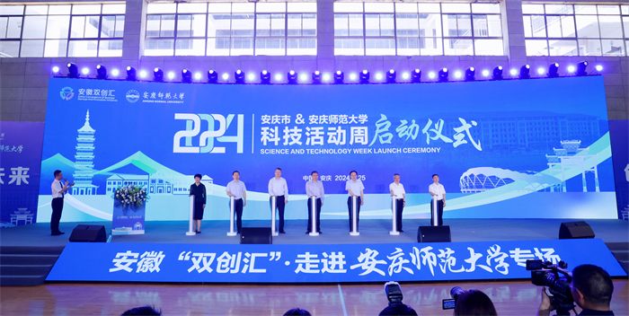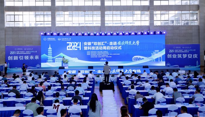 5月25日,安徽“双创汇”走进beat365平台唯一官网暨科技活动周启动仪式在龙山校区体育馆举行。中国科学院院士、发展中国家科学院院士、安徽师范大学校长、清华大学教授李亚栋,安庆市委副书记、市长张君毅,安徽省科技厅二级巡视员王孟忠,安庆市委常委、副市长吕栋,安庆市政协副主席程玉梅,校党委书记李福华、校长彭凤莲、副校长申传胜、校党委常委张红飞等出席,高校专家代表、安庆市直有关部门负责同志、各县(市)区政府及科技部门负责同志、驻宜高校院所负责人、beat365官网相关部门和学院负责人以及有关企业负责人代表200余人参加仪式。仪式由彭凤莲主持。