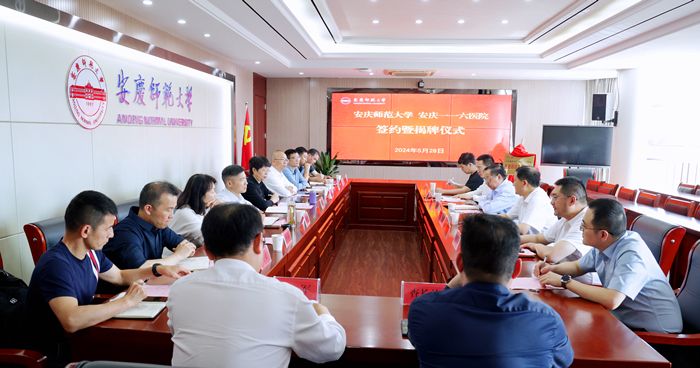 5月28日,beat365官网与安庆一一六医院合作签约暨共建医教研训基地揭牌仪式在龙山校区举行。校长彭凤莲,校党委常委、副校长肖新,安庆一一六医院党委书记胡华及党委副书记、院长张云峰等出席仪式。教务处、科研处、服务经济社会发展处、研究生院、校医院、计算机与信息学院、体育学院、生命科学学院与安庆一一六医院相关科室等负责人参加仪式。仪式由校党委常委、副校长申传胜主持。