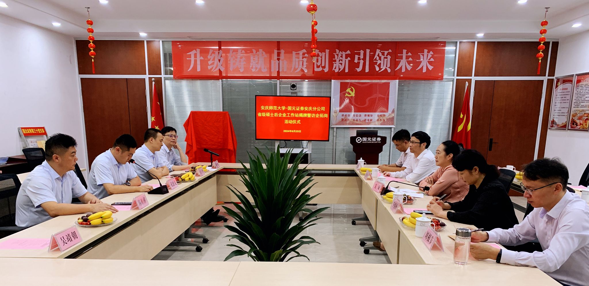揭牌仪式上,吴琼向长期以来关心和支持学校建设发展的中国人民解放军第4812工厂、国元证券股份有限公司安庆分公司表示感谢,介绍了学校基本情况和校市合作成果成效。她指出,企业工作站要强化校企合作、科教融合,做到教育链、人才链、产业链、创新链紧密衔接,创新研究生培养体制机制,发挥企业作为创新主体的作用,切实提高研究生培养质量。希望双方发挥各自优势,聚焦政策研究、人才培养、科研合作、社会服务等重点领域,开展广泛而深入的合作,不断扩大双方交流的广度,不断拓展双方合作的深度,不断丰富双方互动的内容,形成“资源有效对接、成果及时共享、发展相互促进”产学研用新局面。