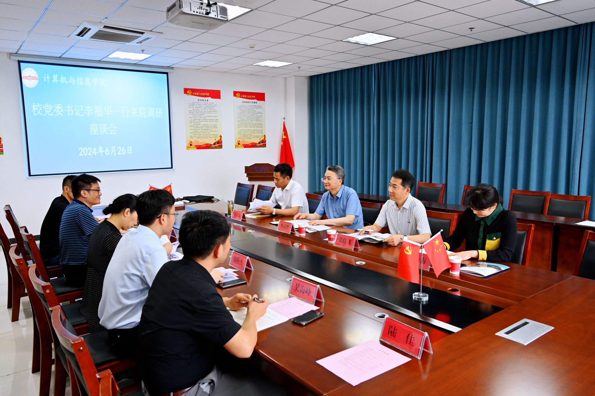 6月26日,校党委书记李福华深入计算机与信息学院调研。校党委常委、办公室主任张红飞,教务处、研究生院等单位主要负责人和计算机与信息学院党政班子全体成员参加调研座谈会。