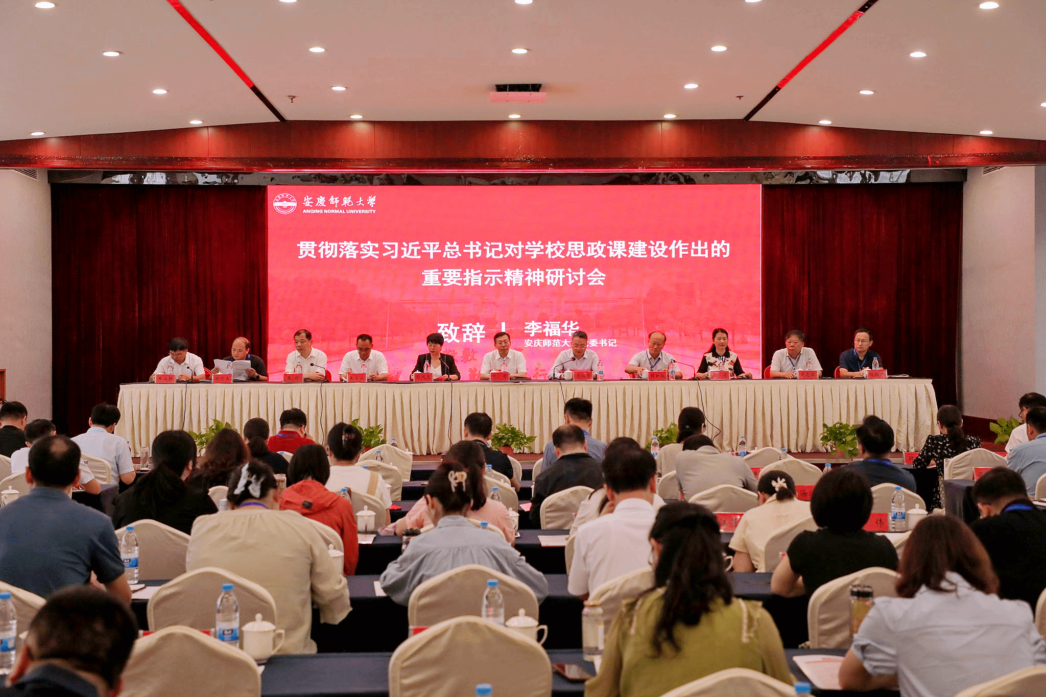 6月28日至30日,贯彻落实习近平总书记对学校思政课建设作出的重要指示精神研讨会在beat365官网召开。安徽省委教育工委副书记范奇、校党委书记李福华、校长彭凤莲和安庆市政府、安徽省社科联、《安徽日报》理论部相关领导出席会议。来自上海交通大学、中国科学技术大学、华中师范大学、安徽大学等省内外大中小学共90多位专家学者、教师参加会议。