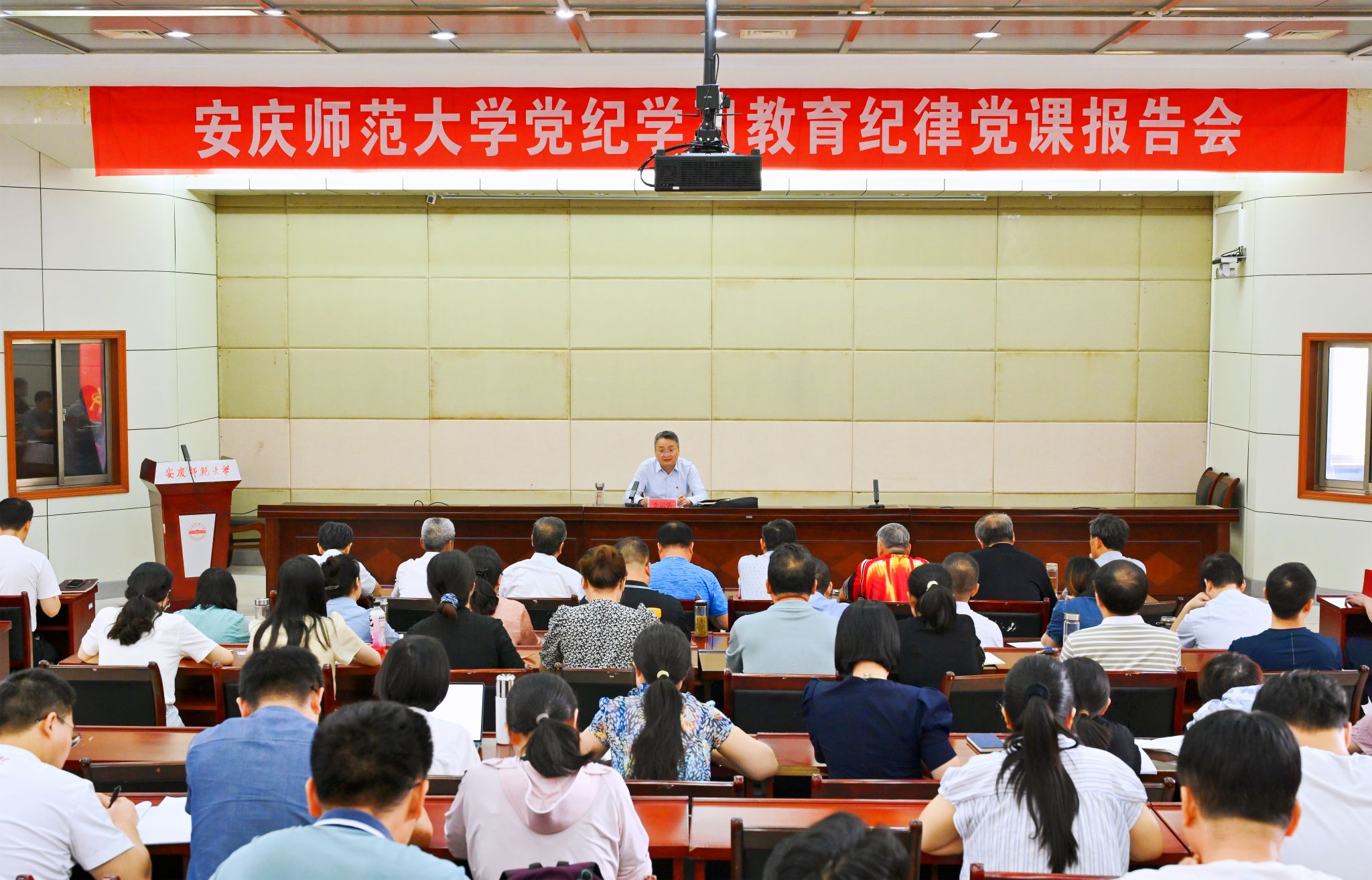七一前后,党员校领导分别为分管部门和联系学院、所在和联系党支部党员干部师生讲授党纪学习教育纪律党课,深入推进党纪学习教育走深走实,带动全校党员干部师生进一步强化纪律意识、加强自我约束、提高免疫能力,增强政治定力、纪律定力、道德定力、抵腐定力。