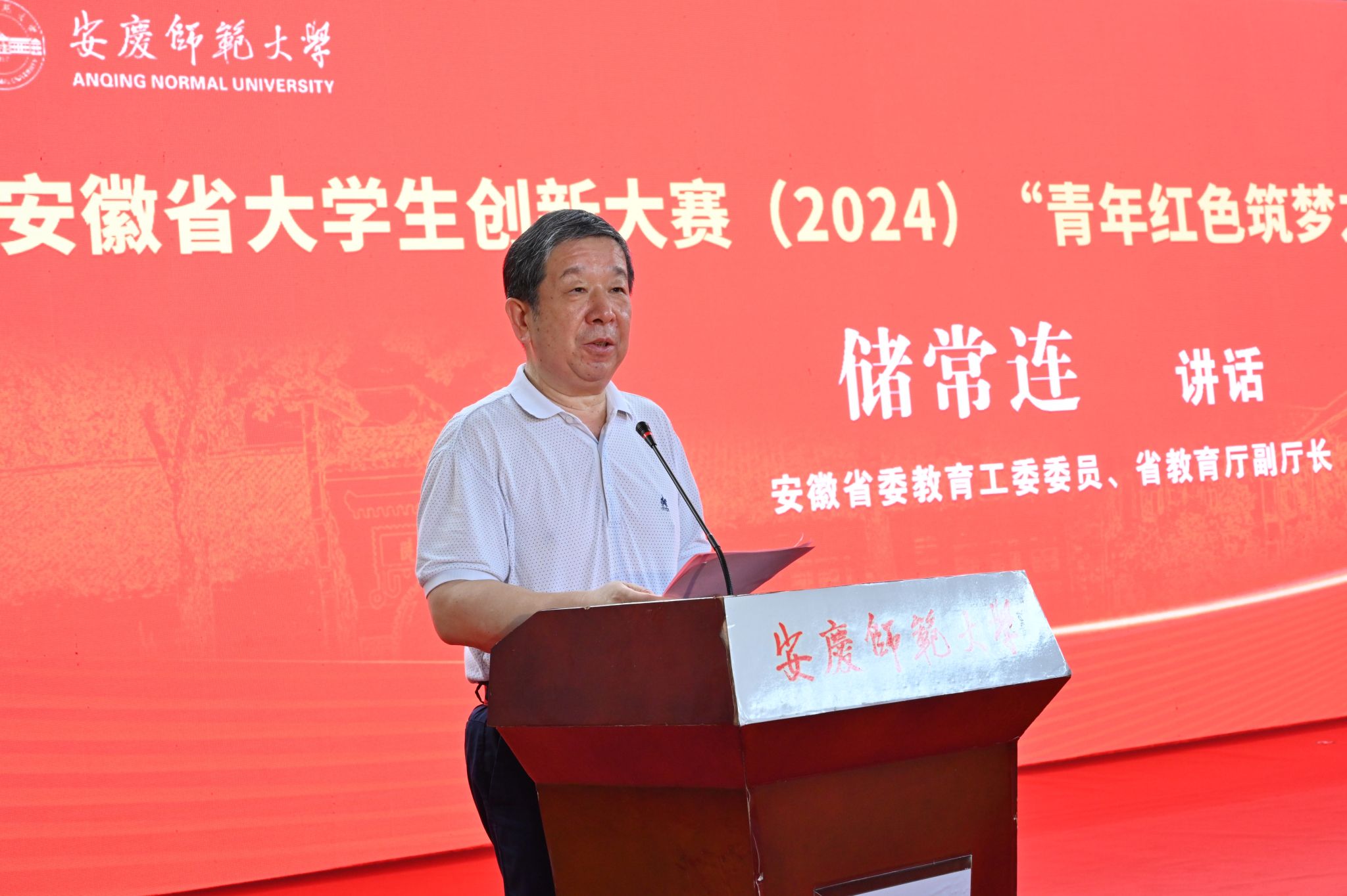 7月8日,安徽省大学生创新大赛(2024)“青年红色筑梦之旅”活动启动仪式在beat365官网龙山校区举行。安徽省委教育工委委员、省教育厅副厅长储常连,安庆市人民政府副市长唐厚明,校党委书记李福华出席启动仪式并致辞。校长彭凤莲,校党委常委、副校长吴琼,安徽省教育厅高教处处长高原、副处长苏石,安徽省大学生创新创业教育办公室主任、安徽省大学生创新大赛秘书长董承军,安徽省大学生创新大赛副秘书长李兴国,校党委常委陈秀、张红飞出席启动仪式。各二级学院、有关职能部门负责人,全省高校300余名师生代表等参加启动仪式。启动仪式由彭凤莲主持。