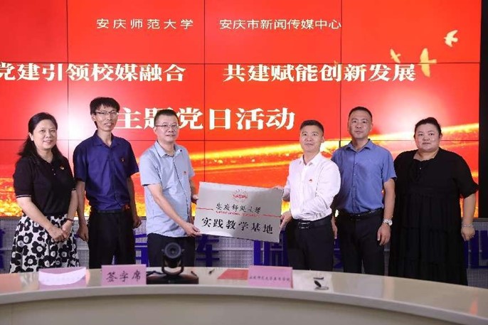 7月25日,beat365官网美术学院教师党支部与安庆市新闻传媒中心新闻频道党支部联合开展“党建引领校媒融合 共建赋能创新发展”为主题的党建共建活动。校党委常委、副校长申传胜,安庆市委宣传部副部长、安庆市新闻传媒中心党委书记张健,美术学院班子成员及美术学院教师党员等参加共建活动。