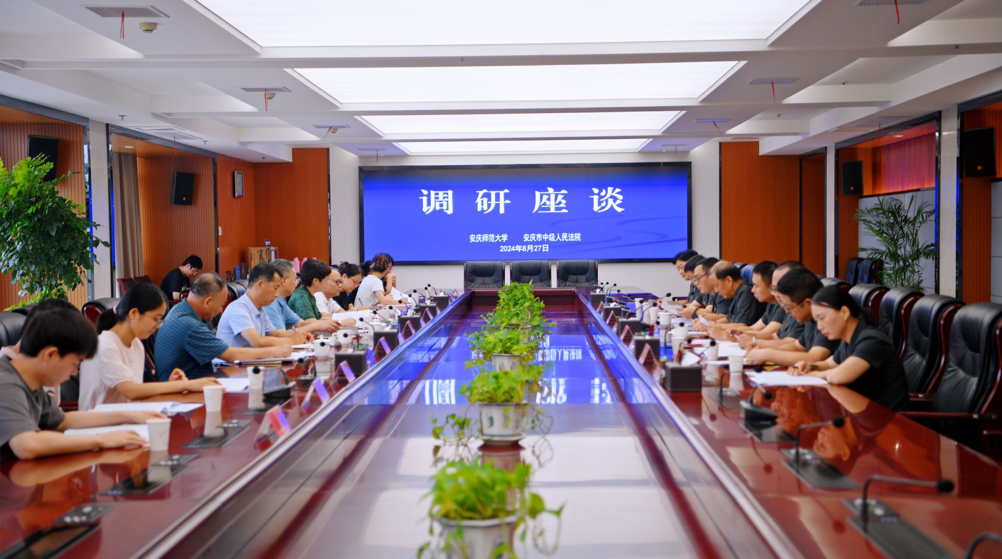 8月27日,校党委书记李福华、校长彭凤莲带队赴法学院实习实践基地安庆市中级人民法院走访调研。安庆市中级人民法院党组书记、院长洪学农等接待李福华一行,安庆市中级人民法院副院长程序,校党委常委张红飞,法学院、资源环境学院相关负责同志参加调研。
