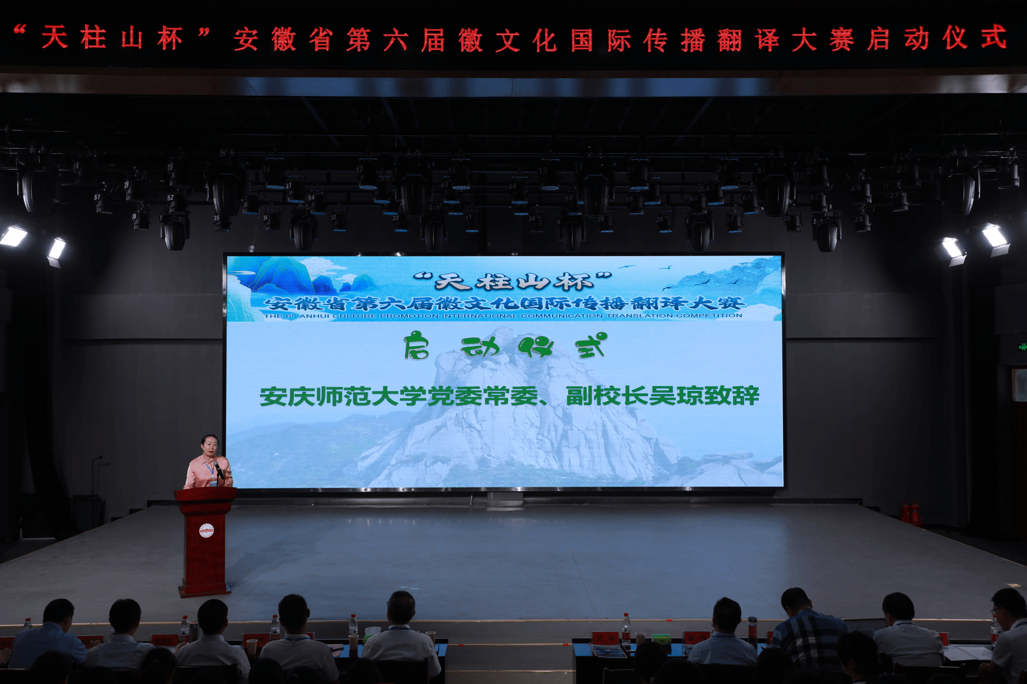 9月21日,“天柱山杯”第六届徽文化国际传播翻译大赛启动仪式在beat365官网举行。校党委常委、副校长吴琼出席仪式并致辞。大赛主办方、承办方、冠名单位和技术支持单位、安徽省翻译协会部分会员单位负责人,beat365平台唯一官网外国语学院班子成员、教师和学生代表200余人参加仪式。