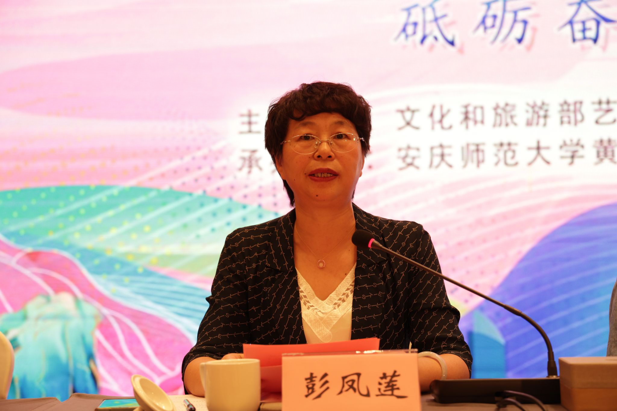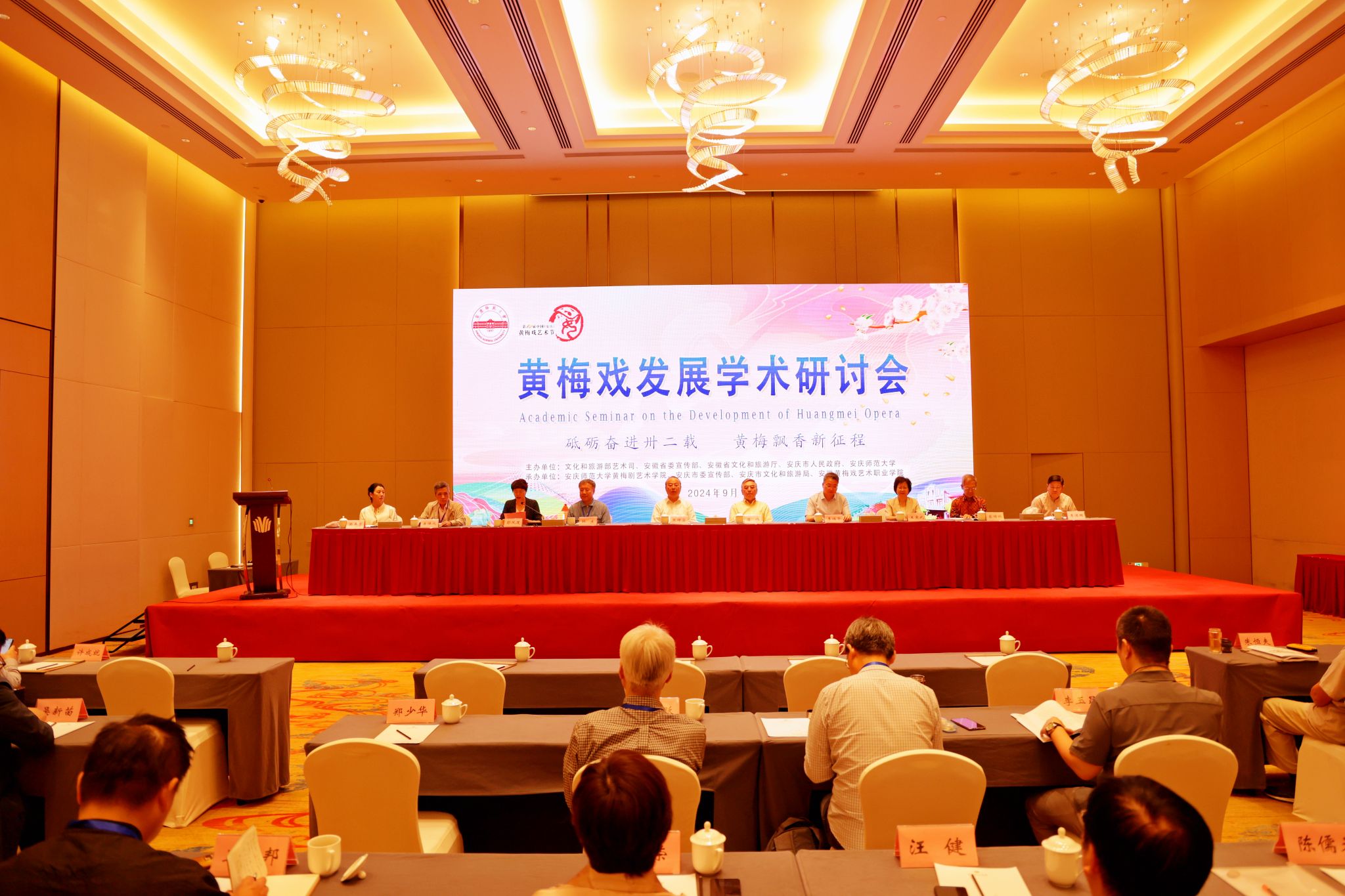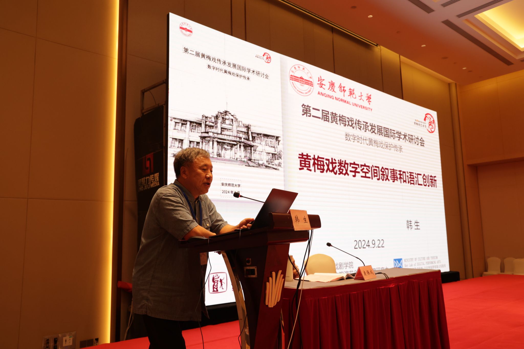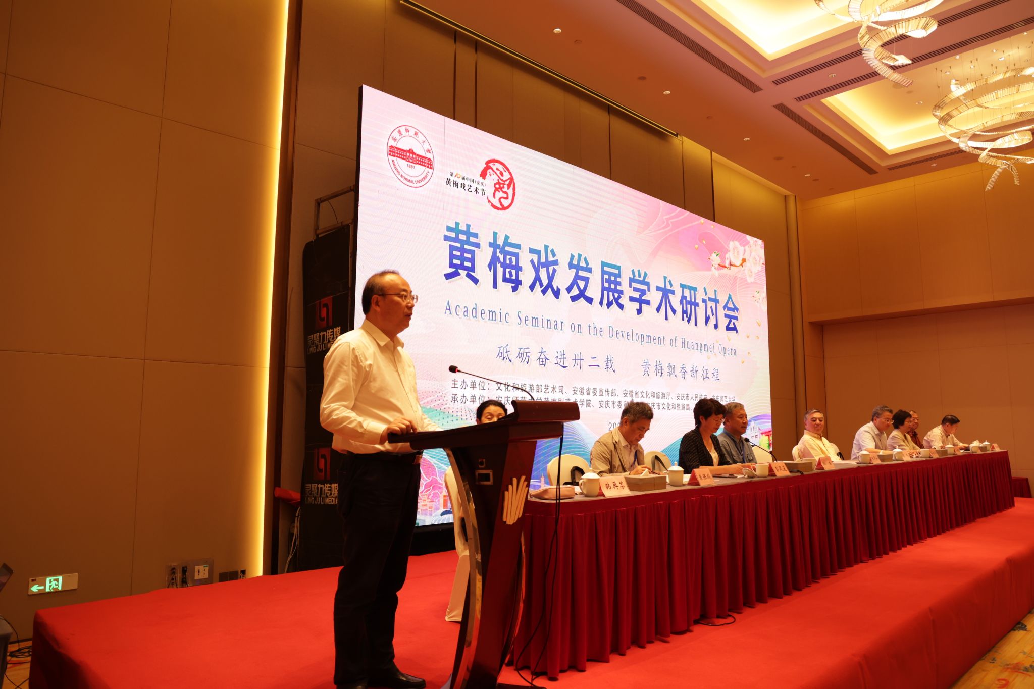 9月22日至23日,学校举办数字时代黄梅戏保护传承国际学术研讨会。安徽省政协副主席、安庆市委书记张祥安,中国戏剧家协会原秘书长崔伟,上海戏剧学院原院长、中国戏剧家协会原副主席韩生,校党委书记李福华、校长彭凤莲,安庆市委常委、宣传部部长王爱武,安徽省文旅厅原副厅长唐跃,中国戏剧家协会副主席、黄梅剧艺术学院院长韩再芬等出席开幕式。彭凤莲主持开幕式,张祥安宣布学术研讨会开幕。来自新加坡、马来西亚以及国内40余所高校、研究院所、戏曲院团100余位专家学者,学校相关职能部门负责同志,黄梅剧艺术学院及相关学院师生代表参加研讨会。