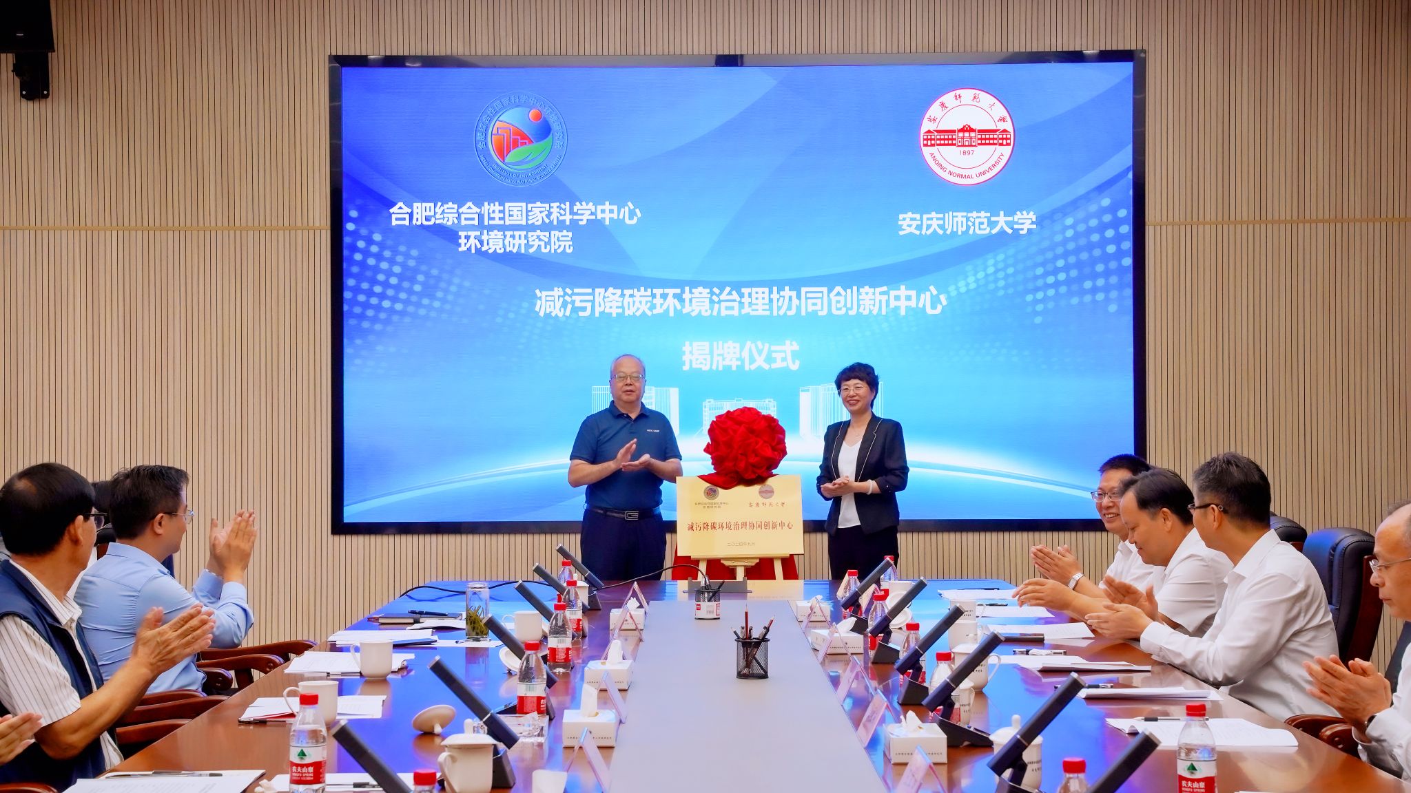 9月26日,学校与合肥综合性国家科学中心环境研究院共建减污降碳环境治理协同创新中心签约暨揭牌仪式在合肥举行。校长彭凤莲,校党委常委、副校长肖新出席揭牌仪式。中国工程院院士、合肥综合性国家科学中心环境研究院院长刘文清,中国工程院院士、合肥综合性国家科学中心环境研究院副院长俞汉青,合肥综合性国家科学中心环境研究院副院长邢献军,安徽大学、安徽理工大学、安徽建筑大学、合肥大学、阜阳师范大学校领导出席活动。省发展和改革委员会、省教育厅相关部门负责人,beat365官网服务经济社会发展处、资源环境学院负责人参加活动。