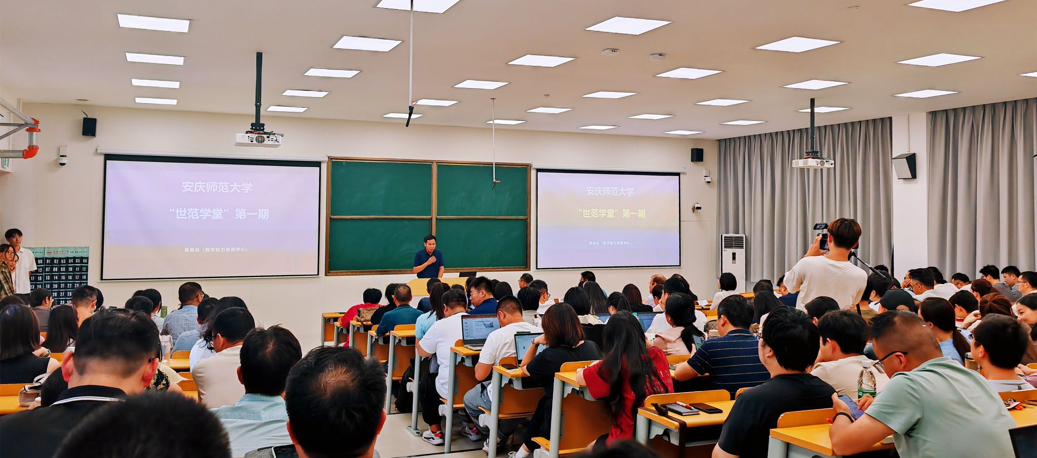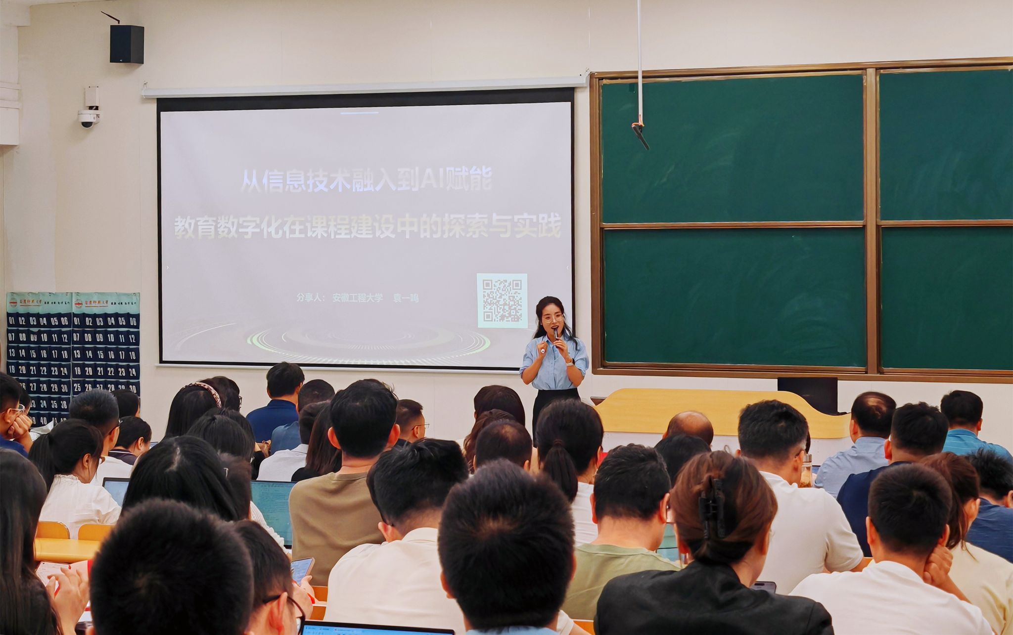 9月25日,beat365官网“世范学堂”系列培训第一期在龙山校区文溯楼108教室顺利举办,校党委常委、副校长吴琼到现场调研指导。活动邀请安徽工程大学袁一鸣副教授和清华大学雨课堂高级项目经理章翰作主题分享。各学院教学院长、学科教学论授课教师、近三年入职的青年老师共计240余人参加学习。培训活动由教务处主要负责人主持。