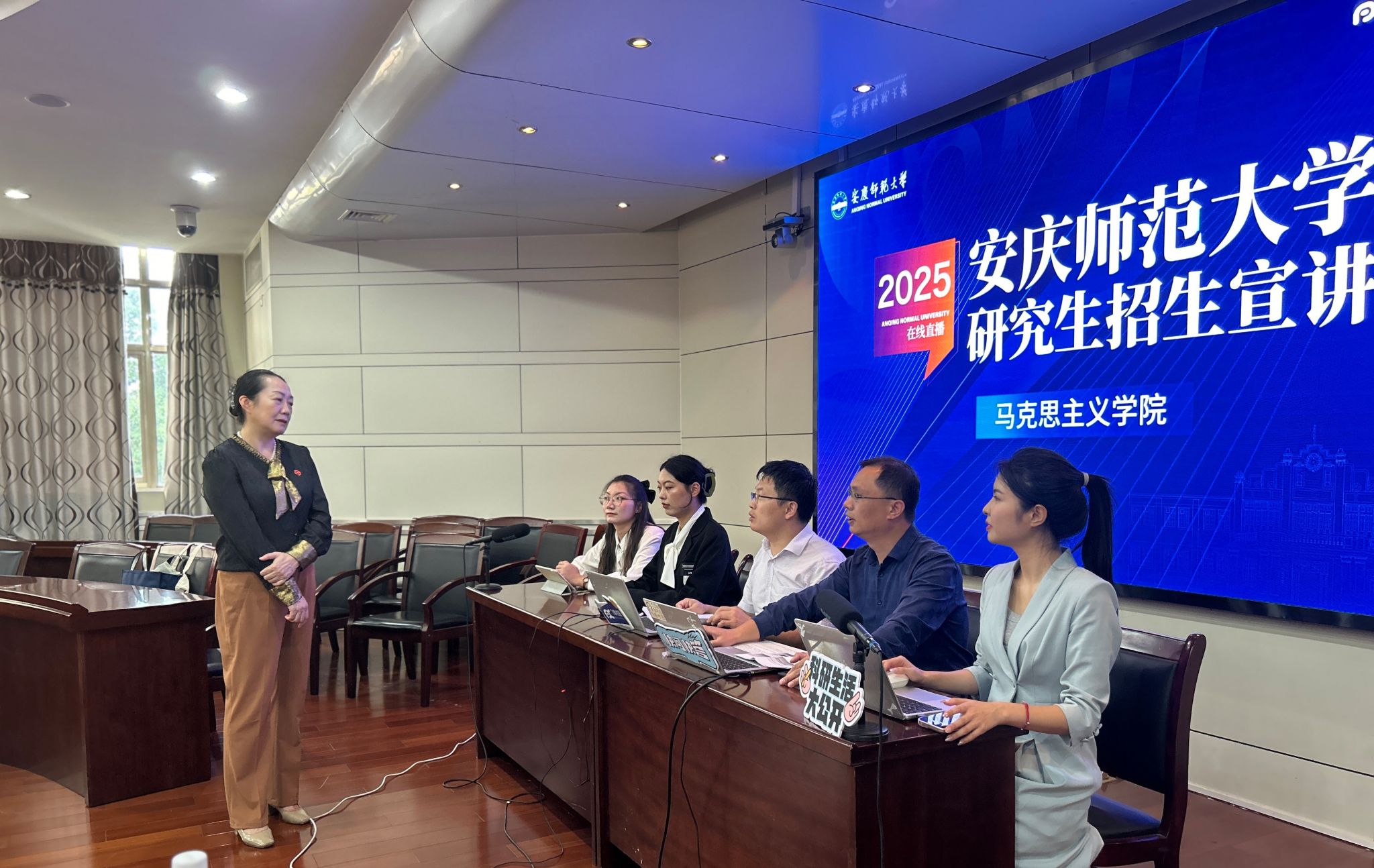 9月25日至27日,学校组织2025年研究生招生宣传线上宣讲会,13个学院做客线上直播间,直播宣讲会累计观看人数超60万人次。校党委常委、副校长吴琼到直播现场指导并慰问直播师生代表。
