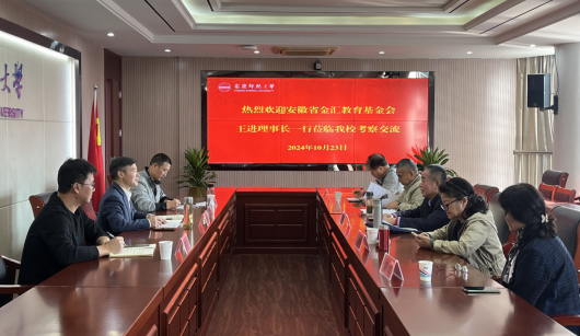 10月23日,安徽省金汇发展教育基金会理事长王进一行来校考察交流学生资助工作。校党委常委、副校长申传胜出席座谈会。学生处、教育发展基金会办公室负责人及校学生资助管理中心相关人员参加座谈。