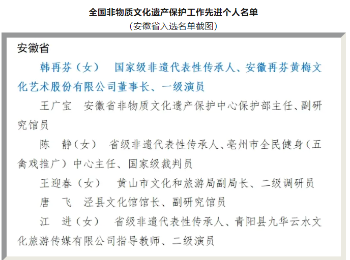 近日,文化和旅游部授予 198 人“全国非物质文化遗产保护工作先进个人”光荣称号,黄梅剧艺术学院院长、戏曲与曲艺学科带头人韩再芬成功入选。该荣誉是对韩再芬在非遗领域长期耕耘与付出的充分肯定,更是对其传承中华优秀传统文化的高度认可。