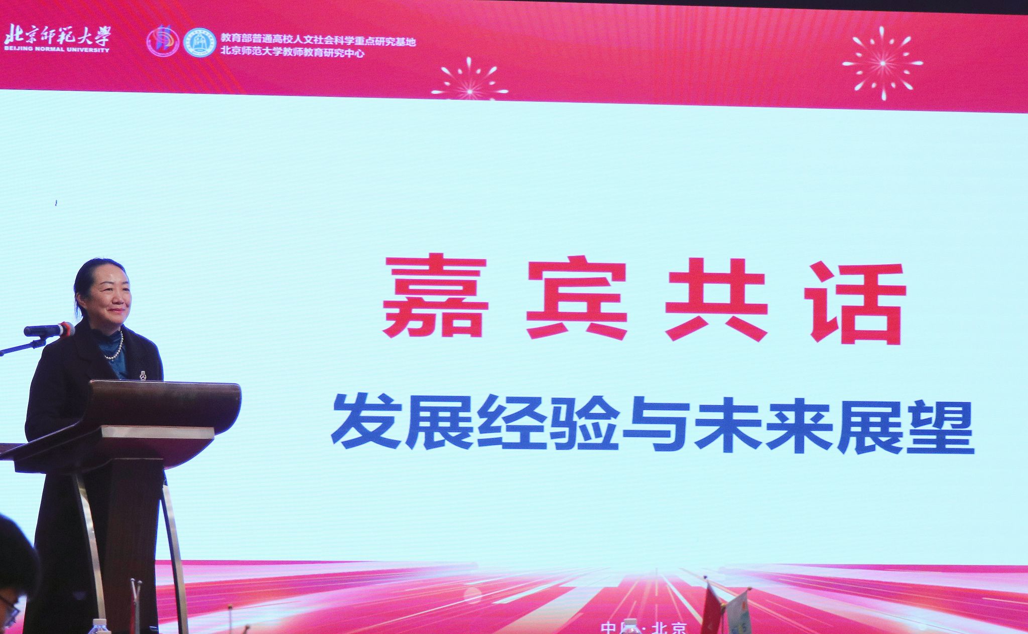 彭凤莲在贺词中指出,二十年来,北京师范大学教师教育研究中心始终秉持“良师善邦,启师致远”的发展使命,与国家教师教育发展同频共振,致力于探索教师教育学科前沿,服务于国家高质量教师培养与队伍建设的重大战略需求。不仅在教师教育研究领域深耕细作,引领学科发展潮流,更在智库建设、人才培养、国际交流和社会服务等方面结出累累硕果,为我国教育事业发展作出了重要贡献。