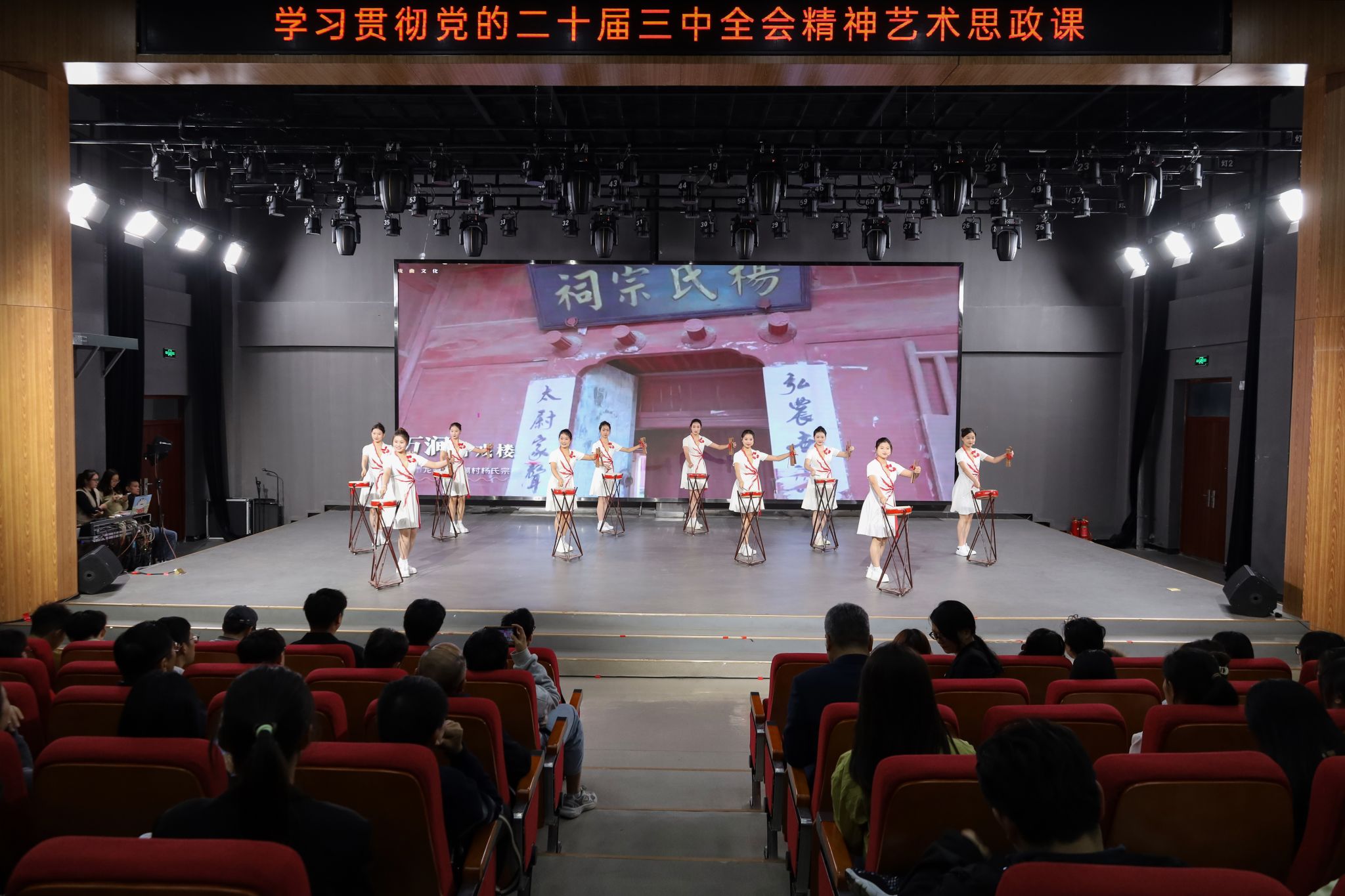 本次艺术思政课以“坚定文化自信,谱写奋斗华章”为主题,紧密围绕学习贯彻党的二十届三中全会精神展开,通过演讲、歌曲、舞蹈、戏曲等多元化的艺术形式,讲述记者故事与职业精神,将党的二十届三中全会精神的深刻内涵进行了形象化的展现。