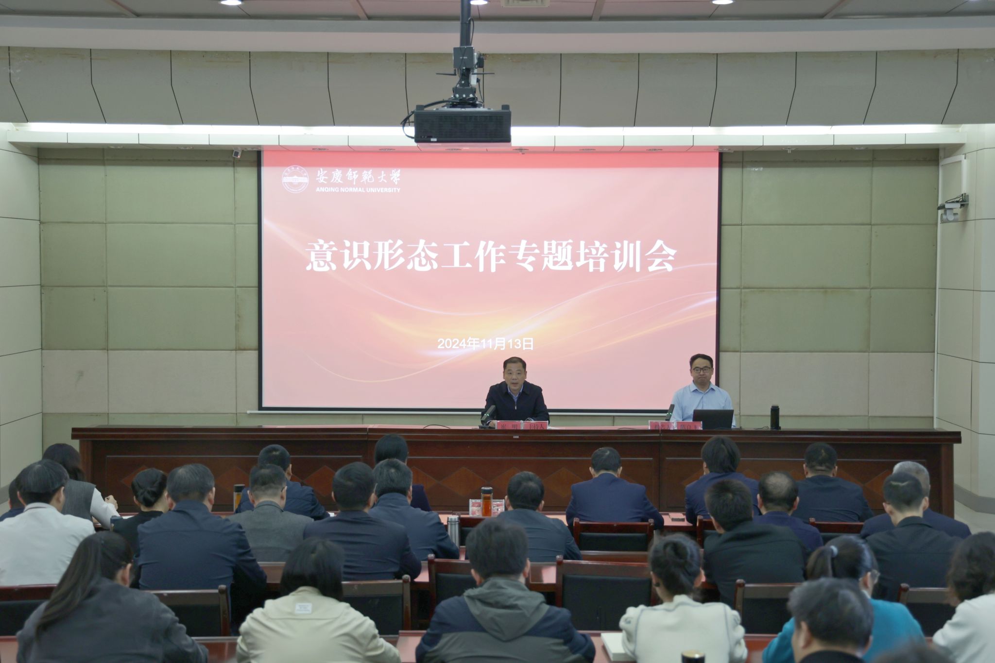11月13日,学校举办意识形态工作专题培训会。培训会邀请澎湃新闻政治新闻部总监、港澳台新闻部总监、高级记者陈良飞,中国新闻摄影学会理事、中国摄影家协会理事、安徽省新闻摄影学会副会长、安徽省摄影家协会副主席、安徽日报社视觉新闻中心副主任(主持工作)、一级摄影师、高级记者徐国康分别作专题讲座。校党委副书记崔明,校党委常委、宣传部部长陈秀出席会议。会议由崔明主持。