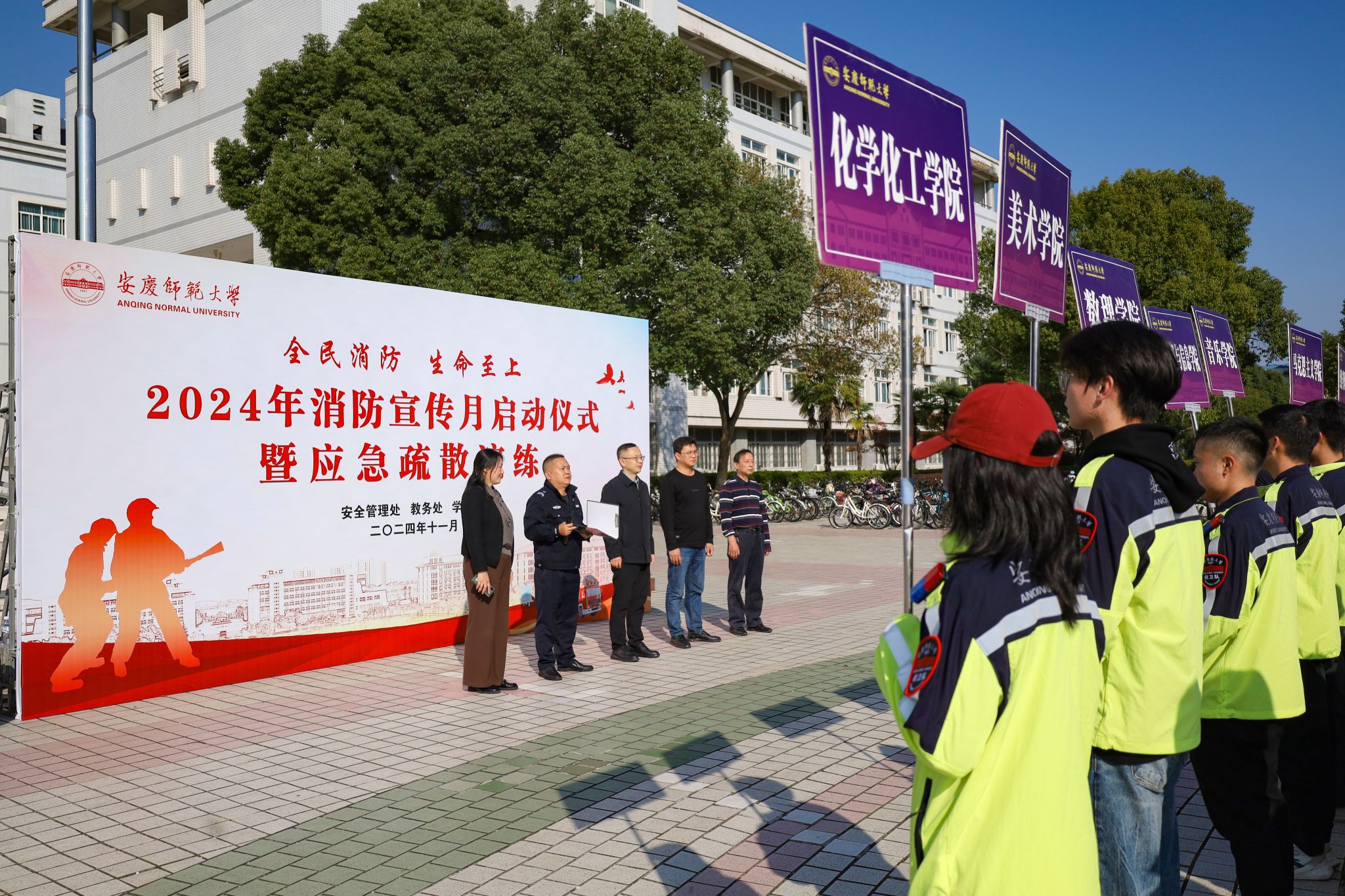 11月13日,学校开展2024年消防宣传月应急疏散演练活动。校党委常委、副校长徐晓宁出席活动。安全管理处、学生工作处、教务处、校医院等相关部门负责同志,各学院辅导员、学生代表,学生校卫队参加活动。