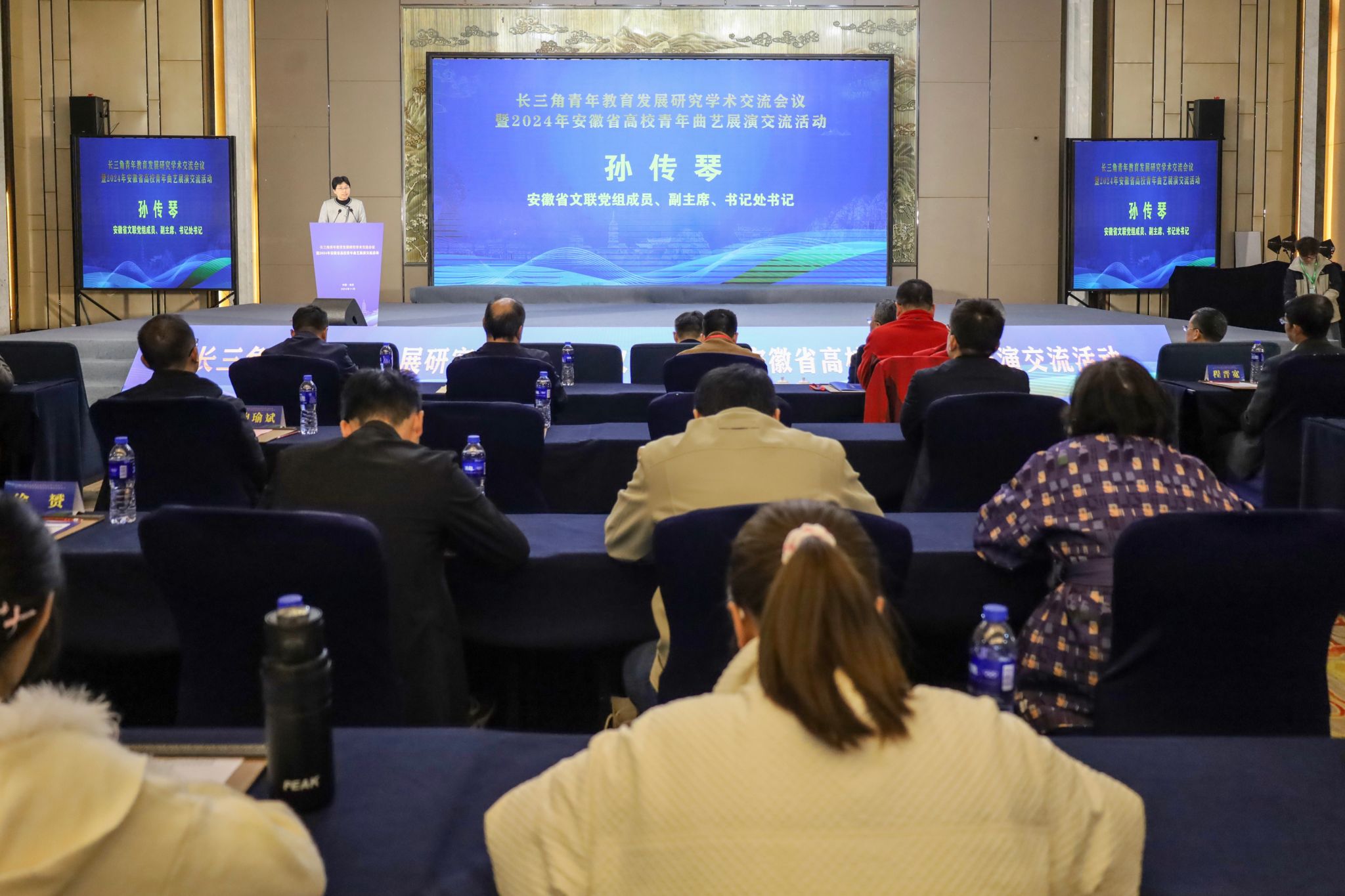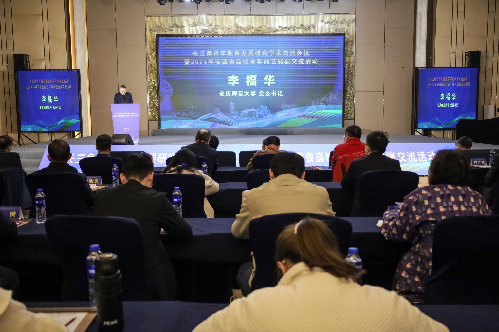 11月22日至23日,由团安徽省委、安徽省文联、安徽省学联和beat365平台唯一官网联合举办的长三角青年教育发展研究学术交流会议暨2024年安徽省高校曲艺展演活动在安庆市开幕。团安徽省委副书记、安徽省青联主席李波,安徽省文联党组成员、副主席、书记处书记孙传琴,校党委书记李福华、校长彭凤莲、校党委副书记崔明,安庆市委常委、副市长吕栋出席开幕式。长三角地区有关省级团委学校部、有关高校团委、美育教学管理机构、研究机构负责同志,中国社会科学院、中国青少年研究中心、中国艺术研究院等国字号研究单位权威专家,长三角地区30余所高校、科研院所近300名学者、青年师生参加开幕式。