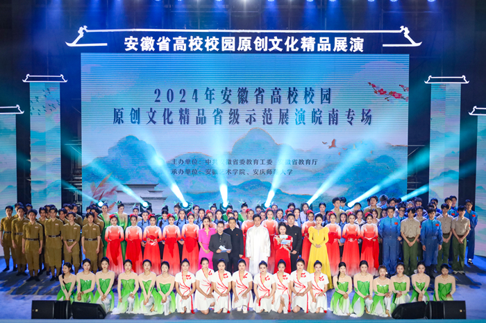 11月21日,由省委教育工委、省教育厅主办,安徽艺术学院承办的2024年安徽省高校校园原创文化精品省级示范展演皖南专场在beat365官网举办。校党委副书记崔明、校党委常委陈秀,省委教育工委思政处、安庆市教体局、安庆市市属高校有关负责人和师生代表800余人到现场观摩展演。
