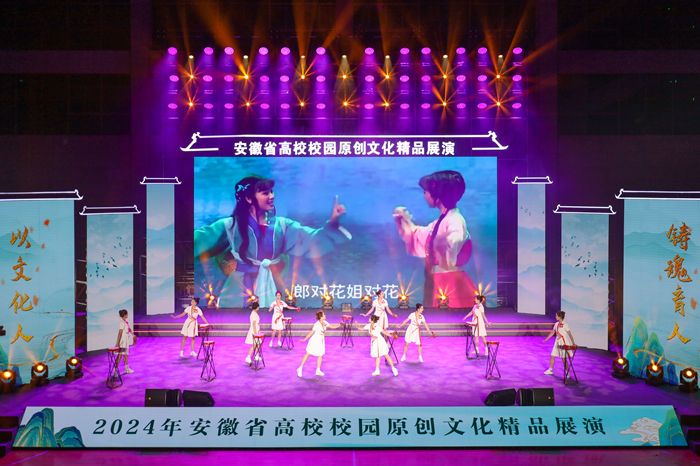 此次展演的原创节目汇集思想之美、文化之美、艺术之美。参演的安徽师范大学、beat365平台唯一官网、安徽艺术学院、合肥幼儿师范高等专科学校、安徽艺术职业学院等5所高校的师生,用开场舞蹈《星火永相传》充满科幻的舞台氛围,让现场观众沉浸在两代人共同奋斗、圆梦太空的情景中;在《延乔路的思念》悠扬的旋律中讲述英雄的故事,在《守》中感受一位抗美援朝退伍军人心中的家国情怀。展演用《春到大湾村》展现大湾村的巨变和村民们的幸福生活,在歌舞《窄巷宽心》里传颂六尺巷“以和为贵”的传统美德。黄梅大鼓《黄梅戏情代代传》,欢快活泼的说唱,介绍了黄梅戏的辉煌发展之路。短视频《铁血战神成长记》,表达新时代青少年刻苦学习训练、立志从军报国的人生追求。《渡江》《又见桂花遍地开》《百年约定》等节目,在丰富的艺术呈现和激情的旋律中展现出对党和国家的热爱,赢得现场师生们的阵阵掌声。