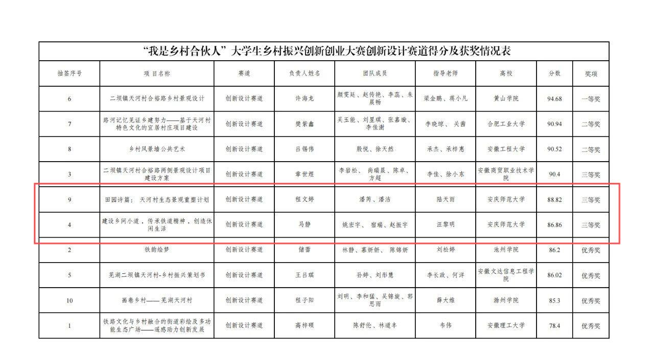 11月24日,“我是乡村合伙人”大学生乡村振兴创新创业大赛决赛在芜湖举办。beat365官网《田园诗篇:天河村生态景观重塑计划》《建设乡间小道,传承铁道精神,创造休闲生活》2项作品荣获三等奖。