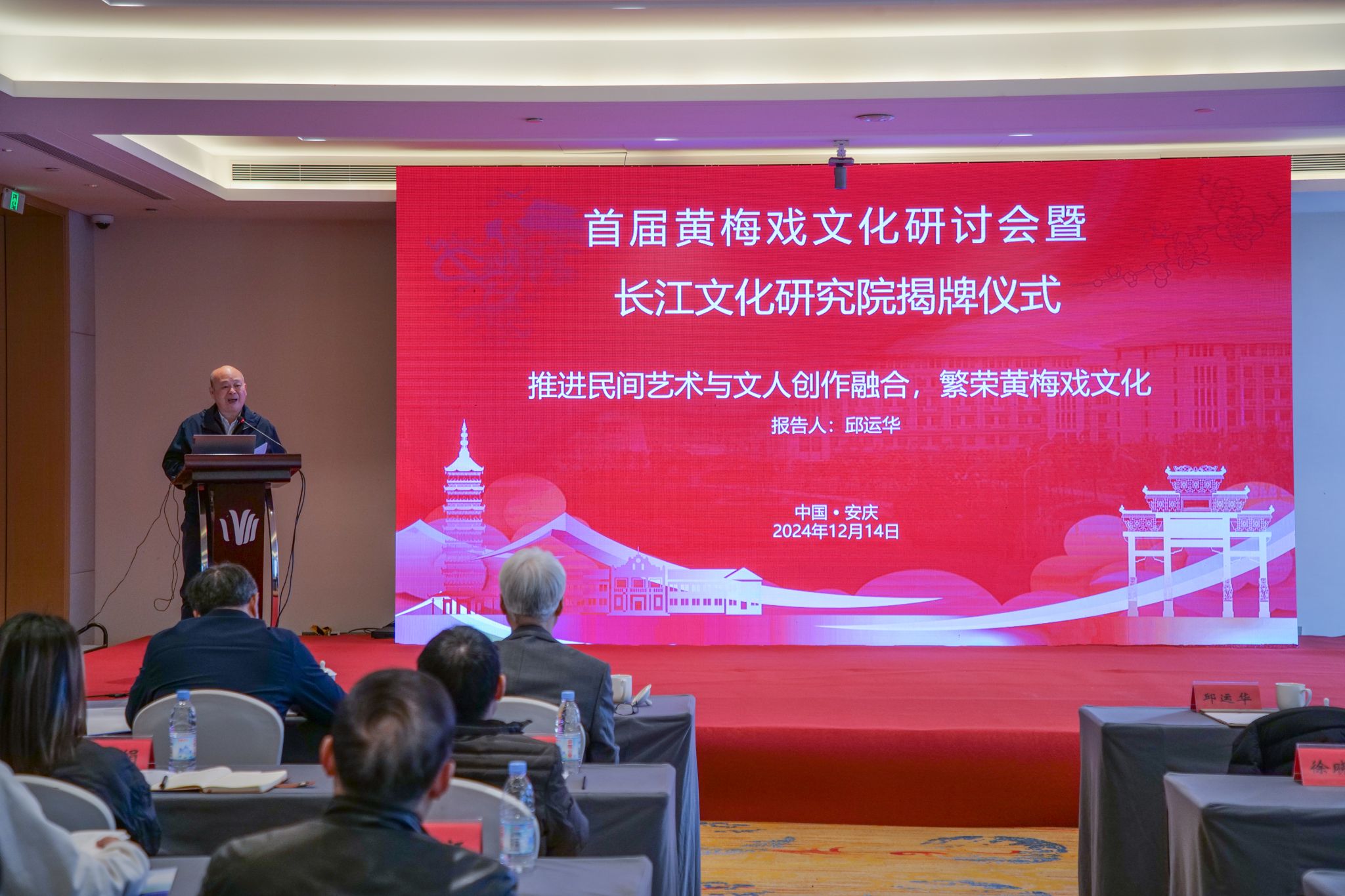 江涛致辞时指出,安庆是长江沿岸的历史名城,黄梅戏文化和长江文化研究一直是beat365平台唯一官网的优势特色学科方向。此次盛会是深入挖掘和传承这两大文化的精髓、贯彻落实习近平总书记考察安徽重要讲话精神的重要举措。他提出,要加强黄梅戏文化概念的研究阐释,理清其内在逻辑;要突出黄梅戏文化的当代价值研究,锚定建设文化强国的战略目标;要注重黄梅戏文化与长江文化的协同研究。江涛指出,黄梅戏文化与长江文化交相辉映,共同铸就安徽文化的魅力,安徽省社科联将继续作为桥梁和纽带,搭建平台,通过学术研究、艺术创作、文化传播等多种方式,让更多的人了解、喜爱和传承黄梅戏文化和长江文化,积极探索两种文化融合发展的新路径、新模式,推动更高层次、更广领域的交流与合作,让黄梅戏文化与长江文化焕发出更加绚丽的光彩。