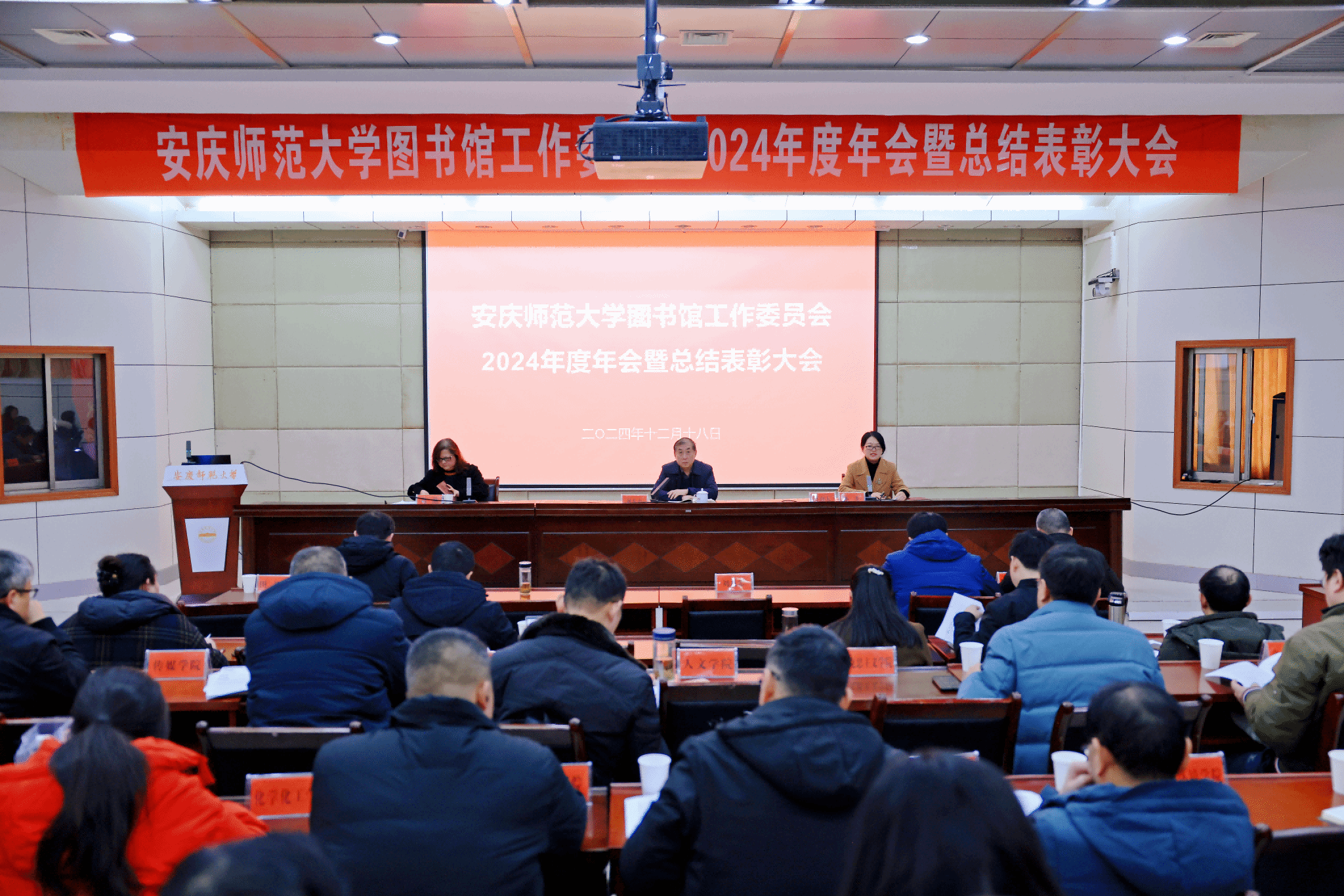 12月18日,学校图书馆工作委员会2024年度年会暨总结表彰大会在行政楼一楼会议室召开。校党委常委、副校长刘友忠,校党委常委、党委宣传部部长陈秀出席会议。校图书馆工作委员会全体委员、图书馆全体员工和获奖师生代表参加会议,清华大学图书馆信息参考部副主任王媛受邀作辅导报告。会议由陈秀主持。