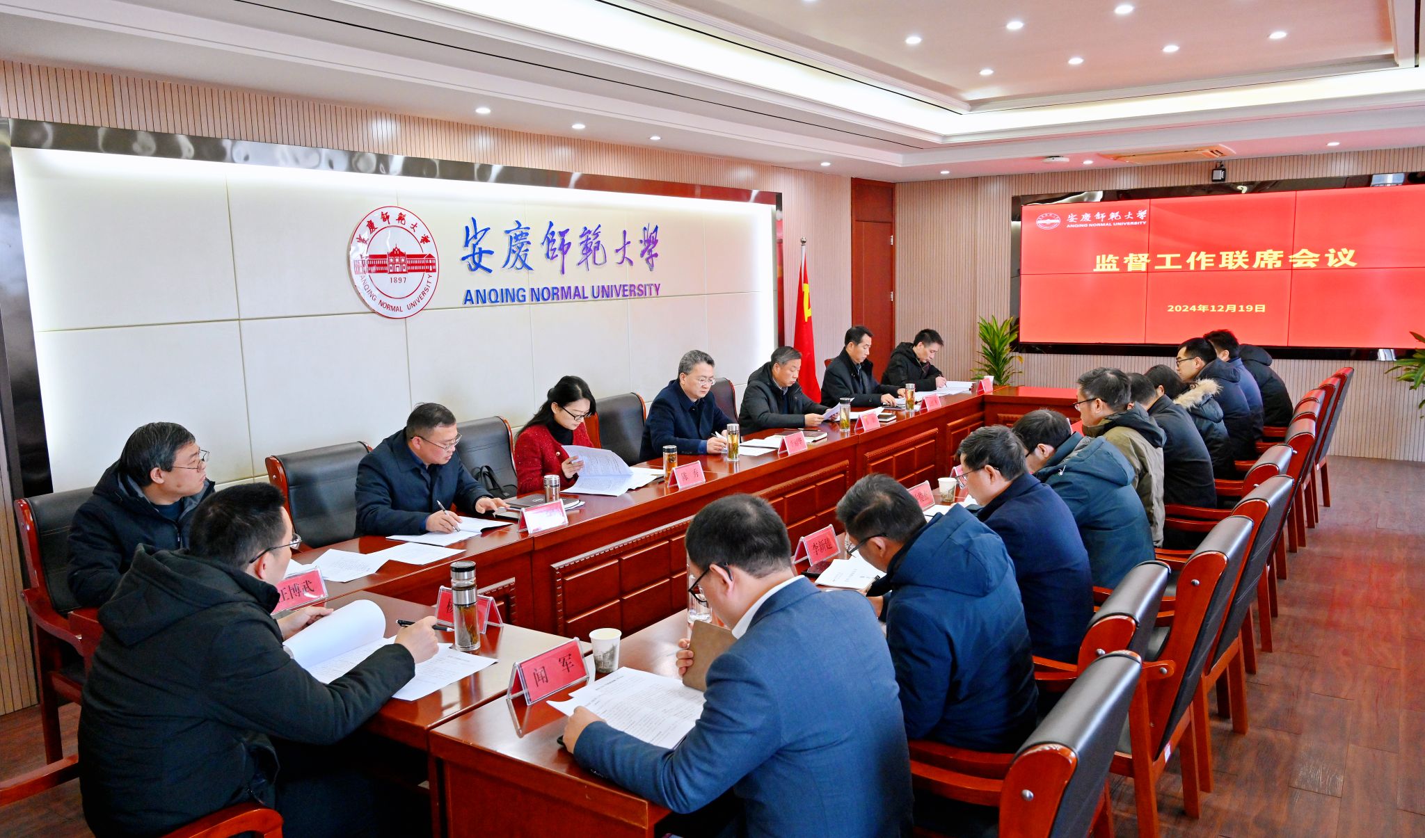 12月19日,学校召开2024年下半年监督工作联席会议,全面总结年度监督工作,对2025年监督工作进行部署安排。校党委书记李福华出席会议并讲话,校党委常委陈秀、张红飞、计裕人出席会议,校党委常委、纪委书记、监察专员秦朗主持会议。
