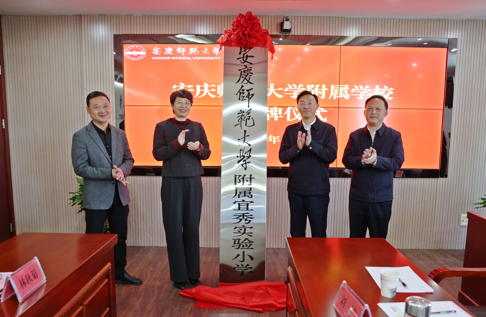 3月21日,学校与宜秀区人民政府举行beat365平台唯一官网附属学校揭牌仪式。校长彭凤莲,宜秀区委副书记、区政府党组书记、区长吴曙,安庆市委教体工委书记、市教体局局长王良宜出席仪式。仪式由校党委常委、副校长肖新主持。安庆市教体局、宜秀区教体局、大龙山初级中学、宜秀区实验小学负责人,beat365官网人事处、教务处、服务经济社会发展处、研究生院、学生工作处和各师范专业所在学院主要负责人参加仪式。
