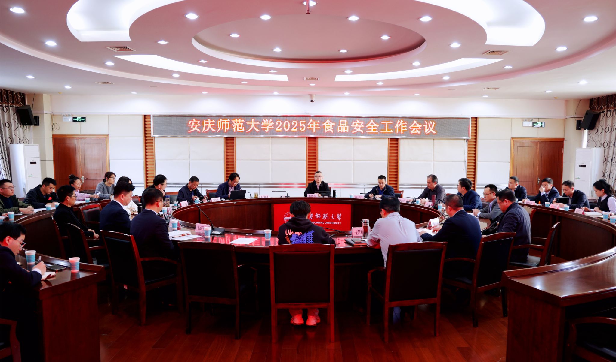 3月25日,学校召开2025年食品安全工作会议。校党委常委、副校长徐晓宁出席会议。安庆市市场监督管理部门有关负责人,学校基建与后勤管理处、学生处、团委、安全管理处、校医院等单位负责人,在校服务餐饮企业负责人、食堂经理、食品安全员、学生代表等参加会议。