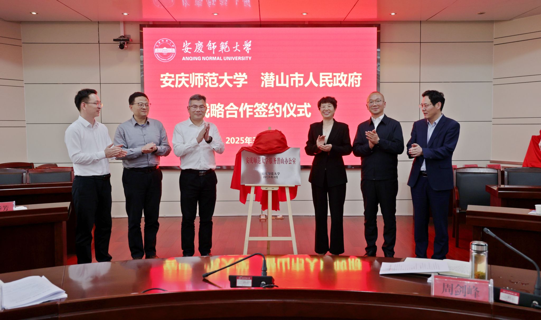会前,王国林一行参观了“安徽省皖西南生物多样性保护与特色资源利用重点实验室”和“安徽省高柔性激光智能制造与检测工程实验室”。会上,汪沛介绍了市域经济社会发展情况及与beat365平台唯一官网总体合作情况,与会人员观看了潜山市“经济发展”专题片,并围绕合作事项充分交流。校地双方签订了战略合作协议并为“beat365平台唯一官网服务潜山办公室”和“皖南文旅融合发展研究院潜山分院”揭牌。(撰稿:姚祈春 摄影:郭云龙 编辑:江伟 审核:江贵生 赵丽丽)