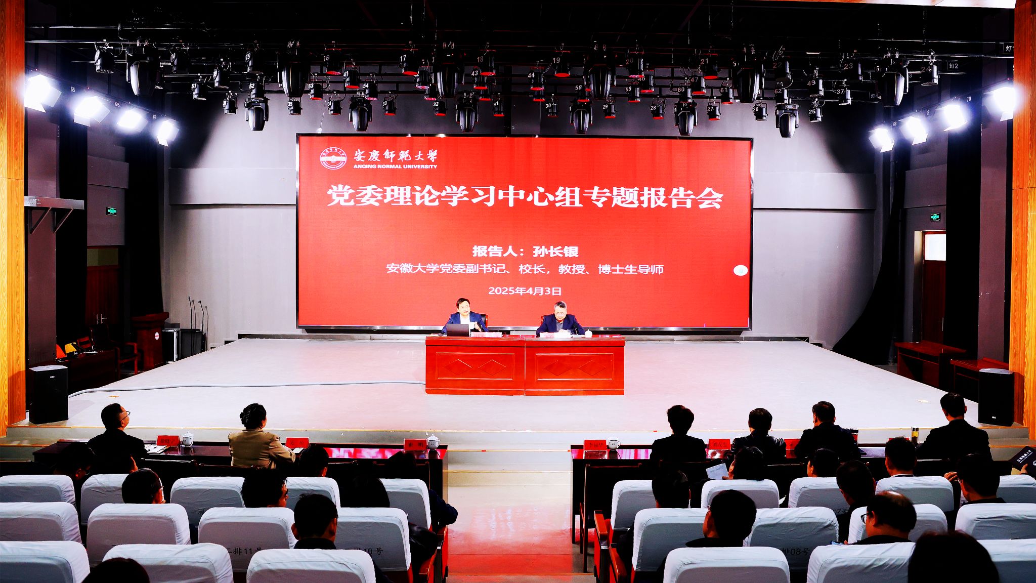 4月3日,校党委理论学习中心组举行学习(扩大)会,邀请安徽大学党委副书记、校长孙长银教授作《人工智能技术发展与社会影响》专题辅导报告。校领导班子成员、中层干部和相关部门、学院教师代表参加学习。校党委书记李福华主持报告会。