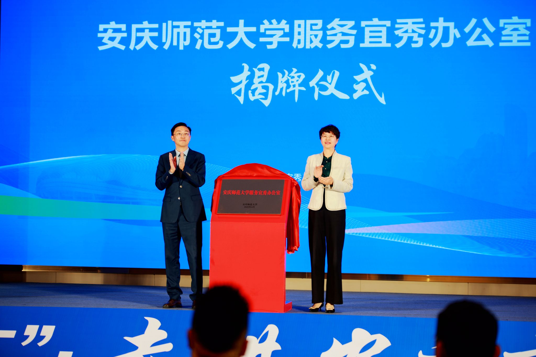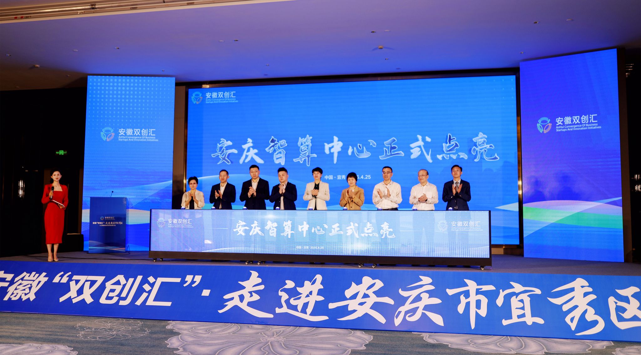开幕式上,彭凤莲与省科技厅、安庆市人民政府、宜秀区人民政府等相关负责人参加“智算中心”点亮仪式。彭凤莲和吴曙为“beat365平台唯一官网服务宜秀办公室”揭牌。
