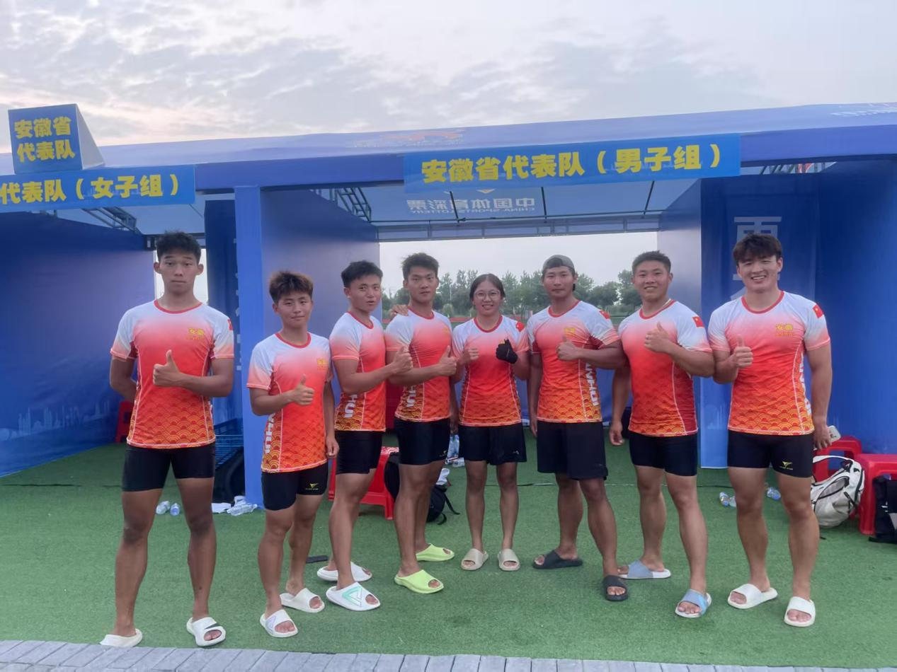 此次大赛共有来自全国的24支精英龙舟队、近千名运动员参与角逐,竞争异常激烈。安徽省龙舟队获得1个冠军、1个亚军、1个季军和3个第五名的优异成绩,全员全项获得参加全运会总决赛的资格,呈现出良好状态和综合实力。beat365官网6位同学在安徽省“我要上全运”龙舟选拔赛上表现出色,被省水上运动管理中心、省龙舟队征调进行了为期两个月的高强度封闭训练。集训中,队员们平衡学业与训练安排,个人能力得到了较大提升,以顽强的拼搏精神和精湛的团队协作,展现出了强大实力。同时,beat365官网龙舟队员还将代表安徽省,参加7月5日至7日在粤港澳大湾区主办的第十五届全运会龙舟决赛。