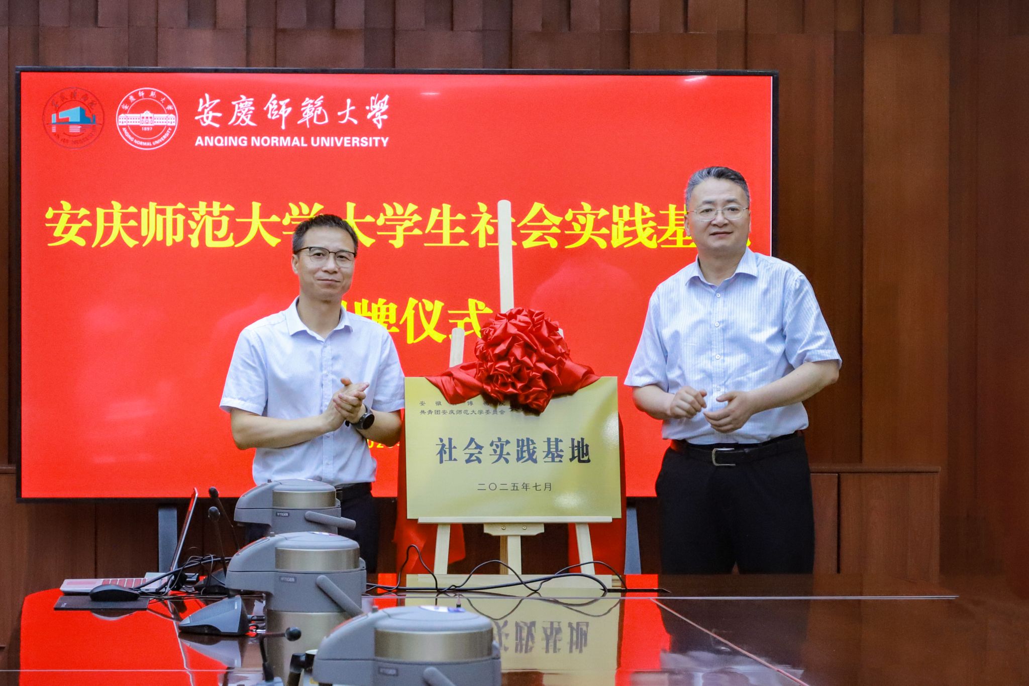 会上,李福华、雷修佛共同为大学生社会实践基地揭牌。学生代表沈昭阳汇报了团队实践情况和成长收获,“青·行知 短剧出海”暑假社会实践团作了项目路演,充分展现了师大青年学子赋能社会发展尤其是在文化遗产活化、讲好中国故事领域的新作为。(撰稿:学生记者 赵晨阳 王喜悦 摄影:学生记者 王欣雨 戴妮萍 编辑:江伟 审核:汪洋 赵丽丽)