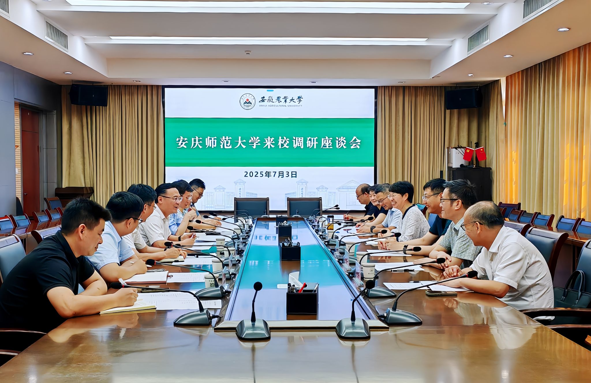 7月3日,校长彭凤莲率队赴安徽农业大学调研。安徽农业大学党委副书记、校长操海群出席座谈会。两校相关职能部门及学院负责人参加座谈会。