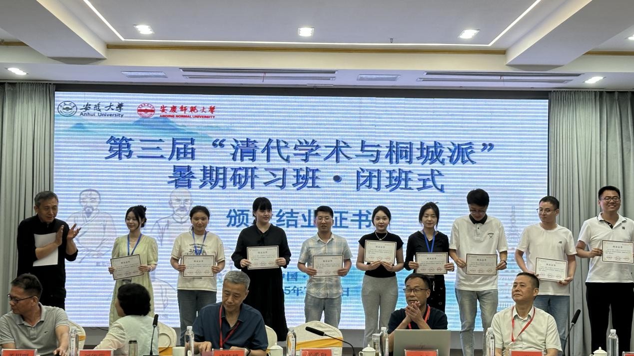 闭班式上,江南大学刘雨晴、山东大学蒋铭、中国人民大学刘莹、安徽大学张成儒作为学员代表发言,传递收获的喜悦。结业证书颁发仪式环节,关爱和、盛险峰、江小角、汪孔丰以及安徽大学出版社社长刘德萍等的总结与展望,则如长辈的殷殷嘱托:研习虽短,薪火长传;青年担纲,未来可期。