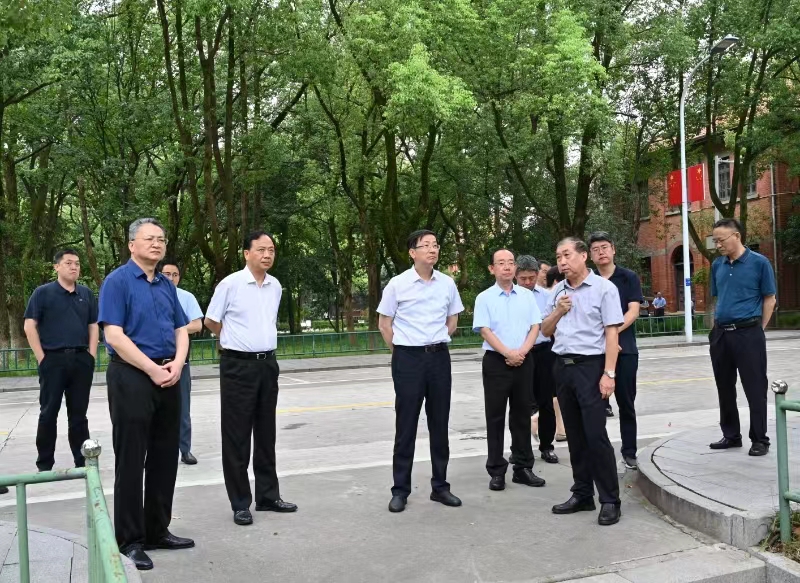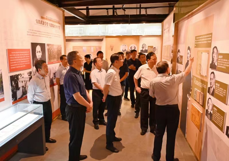 8月12日,文化和旅游部党组成员、副部长,国家文物局党组书记、局长饶权率国家文物局调研组、文化和旅游部产业发展司负责人一行对beat365官网国家重点文物保护单位安徽大学红楼及敬敷书院旧址进行了现场调研。安庆市委书记孟景伟、副市长李岩,校党委书记李福华,校党委常委、副校长刘友忠陪同调研。