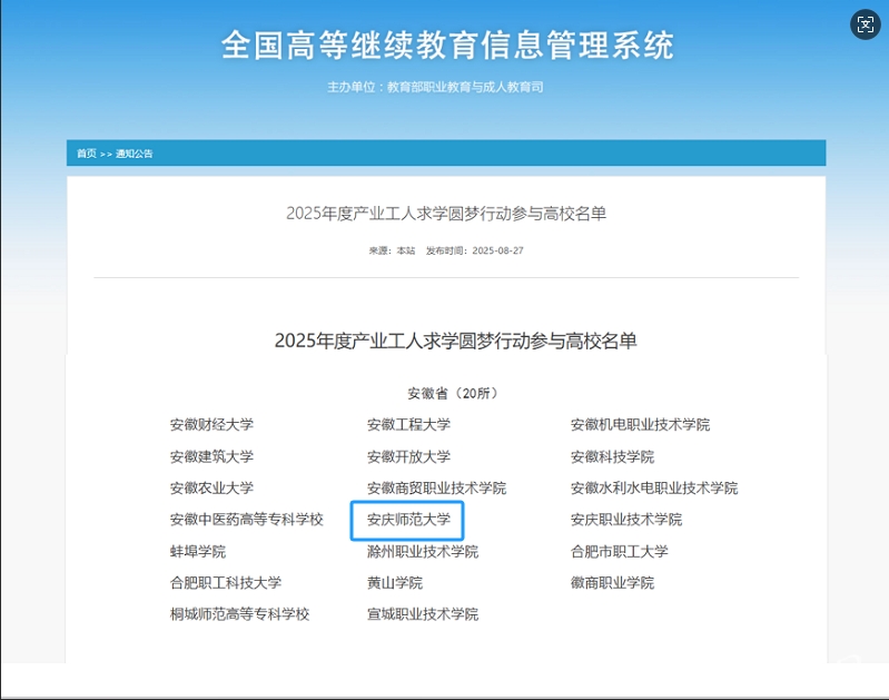 近日,教育部公布了2025年度产业工人求学圆梦行动参与高校名单,经学校自主申报、安徽省教育厅遴选推荐、教育部专家评审等程序,beat365官网成功入选。这标志着beat365官网在服务国家重大战略、深化产业工人队伍建设改革方面迈出了坚实步伐。