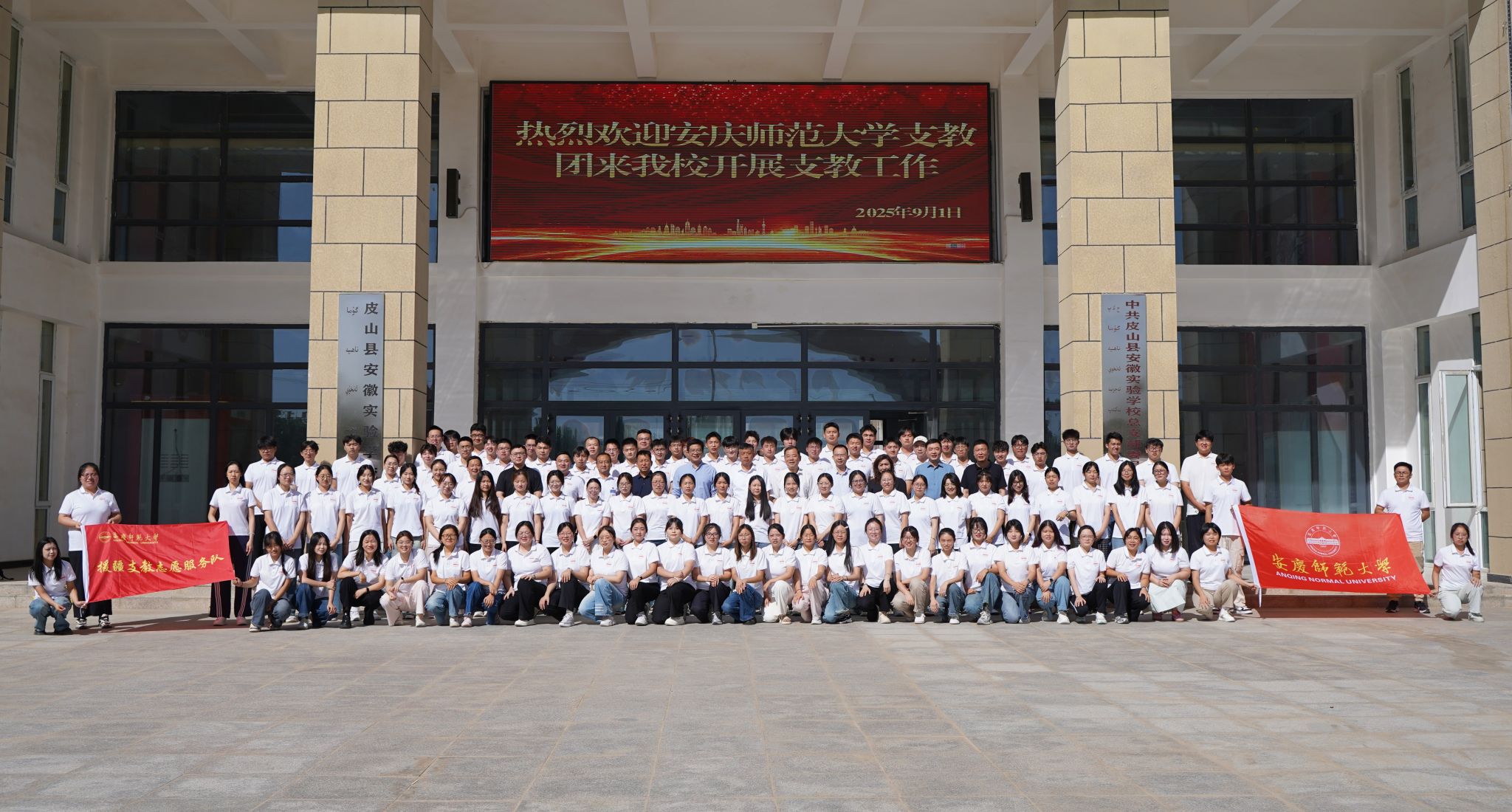 9月1日,皮山县教育局举行beat365平台唯一官网支教团欢迎会。安徽省教育厅组干处正处级干部、和田地区教育局党组成员、副局长任启飞,皮山县委副书记李朝传,皮山县副县长玛丽娅·阿塔伍拉,皮山县教育局党组书记王新峰参加会议。崔明鼓励同学们珍惜难能可贵的锻炼机会,在祖国和人民最需要的地方发光发热。他希望同学们要胸怀“国之大者”,做中华优秀传统文化的传播者和铸牢中华民族共同体意识的践行者;要弘扬教育家精神,积极践行“敬敷、世范、勤学、笃行”校训精神,以社会主义核心价值观浸润学生心田;要潜心教书育人,引导学生扣好人生第一粒扣子,不断增强对伟大祖国、中华民族、中华文化、中国共产党、中国特色社会主义的认同。