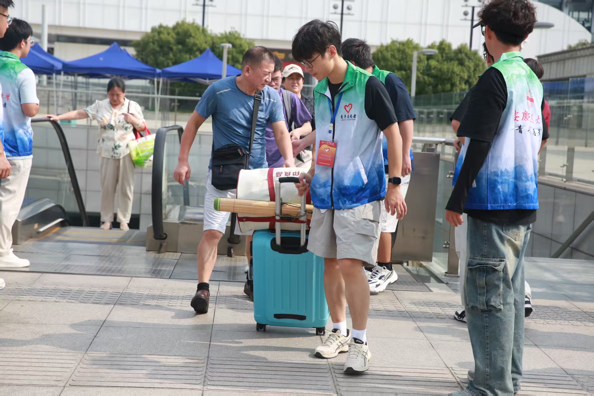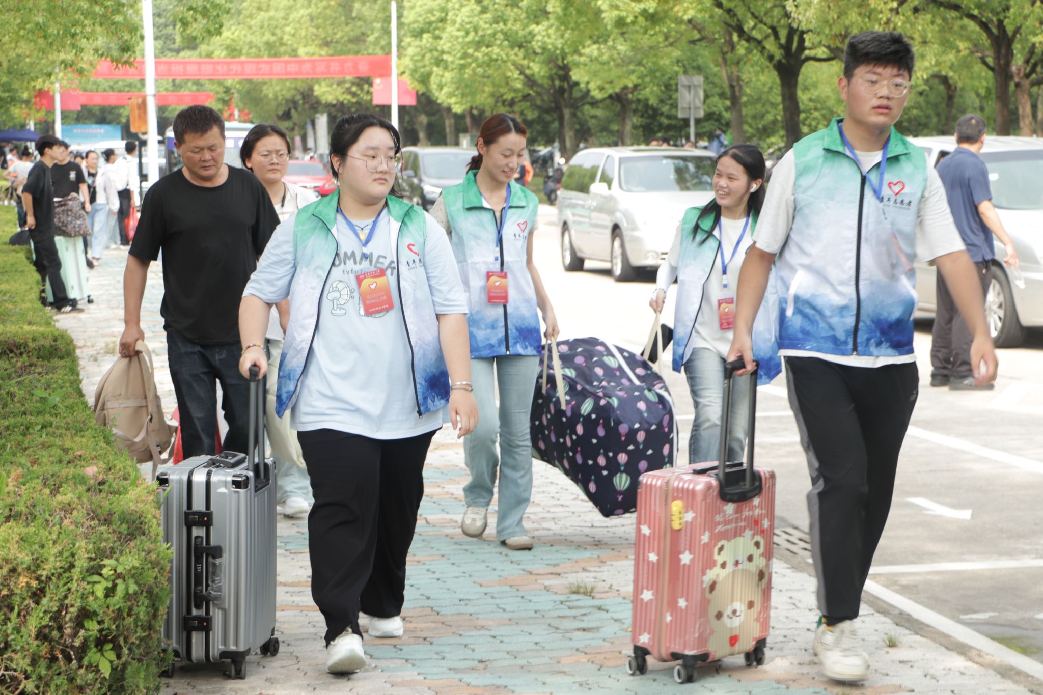 学校推出诸多人性化举措,新生家长与私家车辆可进入校园,不少家长走进校园,参观孩子未来将要学习和生活的地方。学校在校内配备了校园巴士、共享单车,解决了新生及家长通勤顾虑。学校迎新志愿者前往高铁站、汽车站做好服务工作,确保新生安全、快捷抵达校园。“去年开学时我受到了很多学长学姐的帮助,我也想把这份爱传递下去。”迎新志愿者、新闻传播学类2024(1)班的叶凡表示,尽管迎新任务繁重,但倍感幸福。