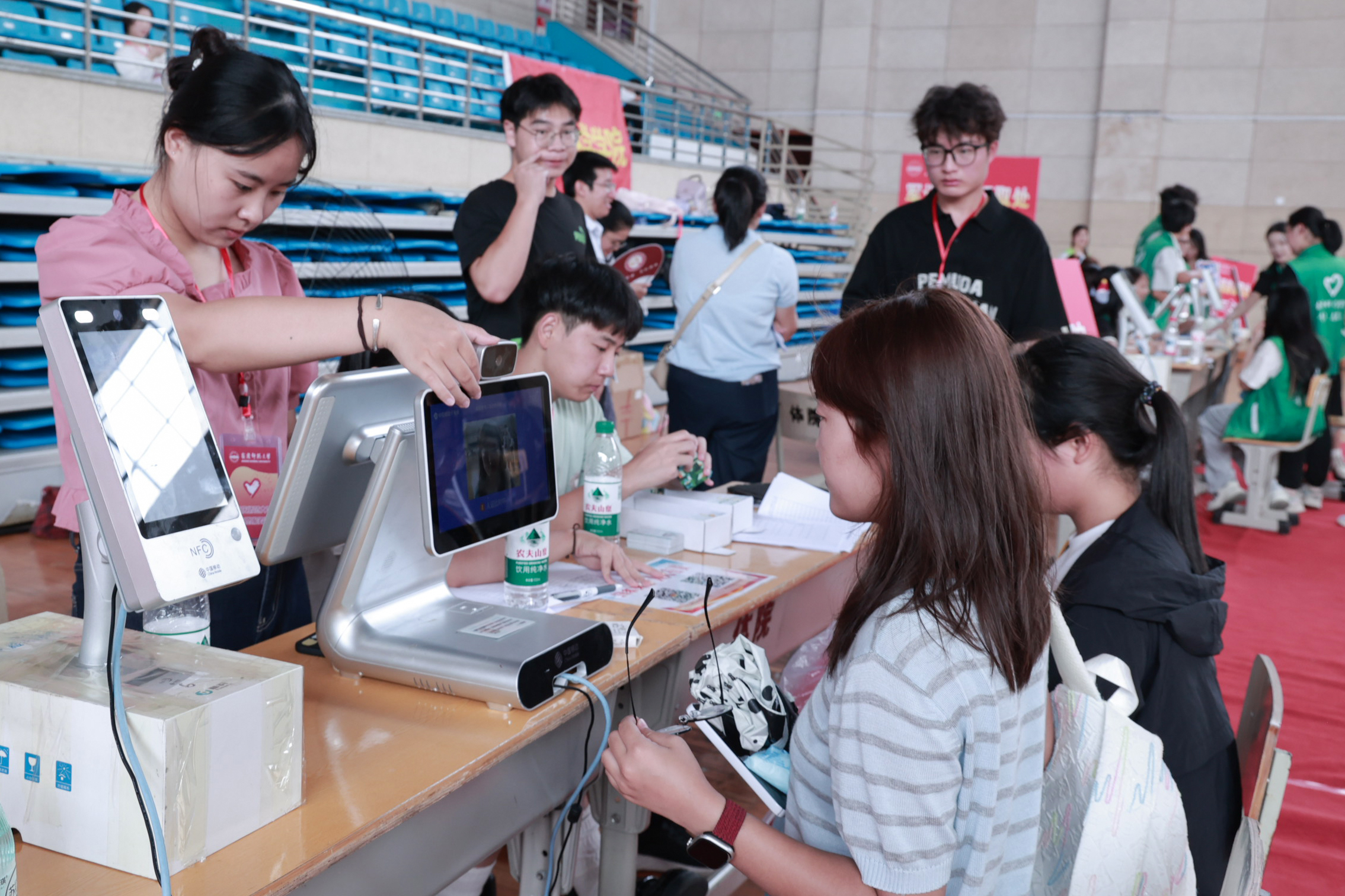 迎新期间,校园内充盈着热闹欢悦的氛围,随处可见朝气蓬勃、生机满满的新面孔。数字实时报到系统、人脸识别核验、军训物资发放……志愿者各司其职,以“一对一、手把手”的服务方式引导新生完成报到。