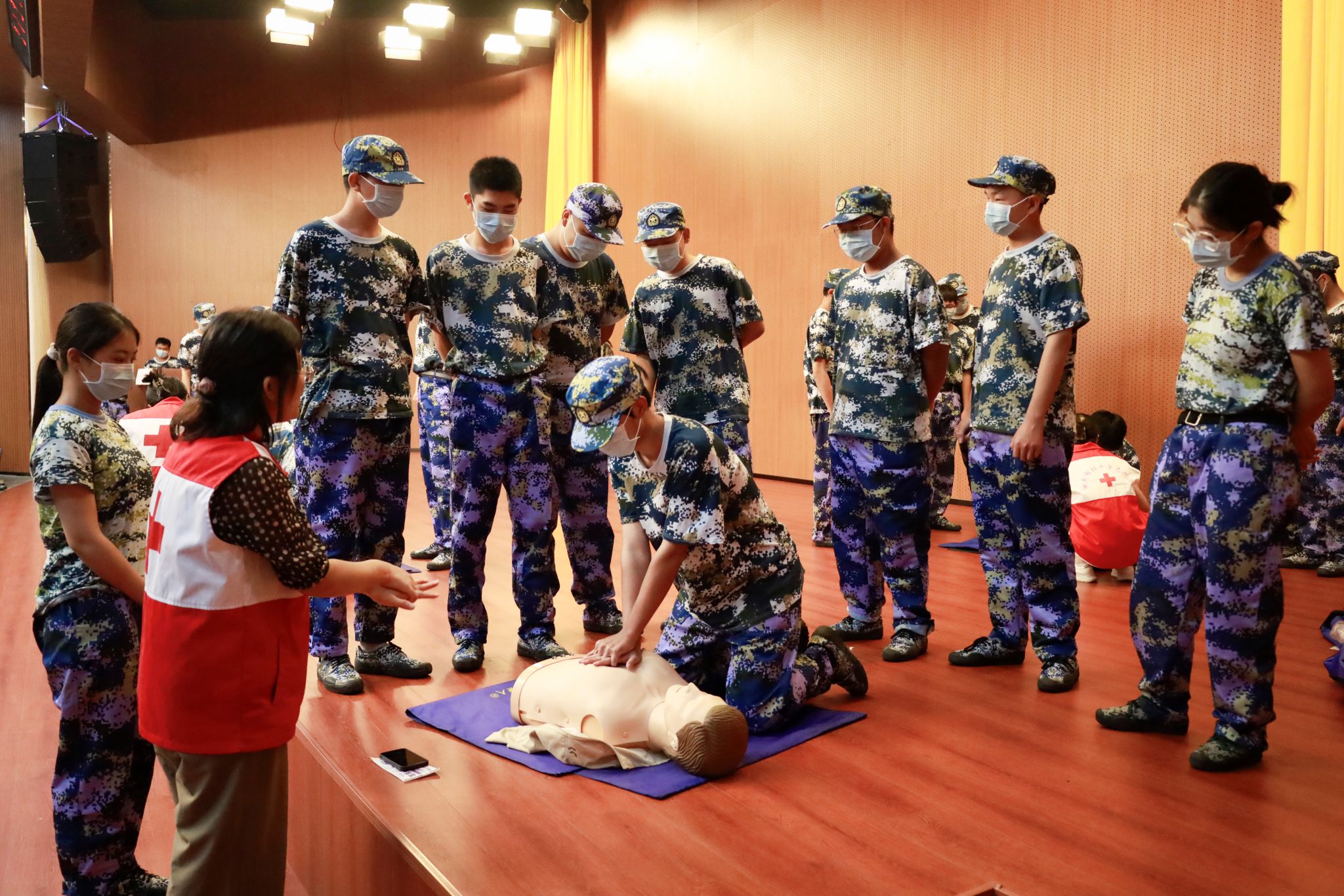 9月12日至16日,学校联合安庆市红十字会在两校区图书馆报告厅开展应急救护及技能培训,4000余名新生参加培训。